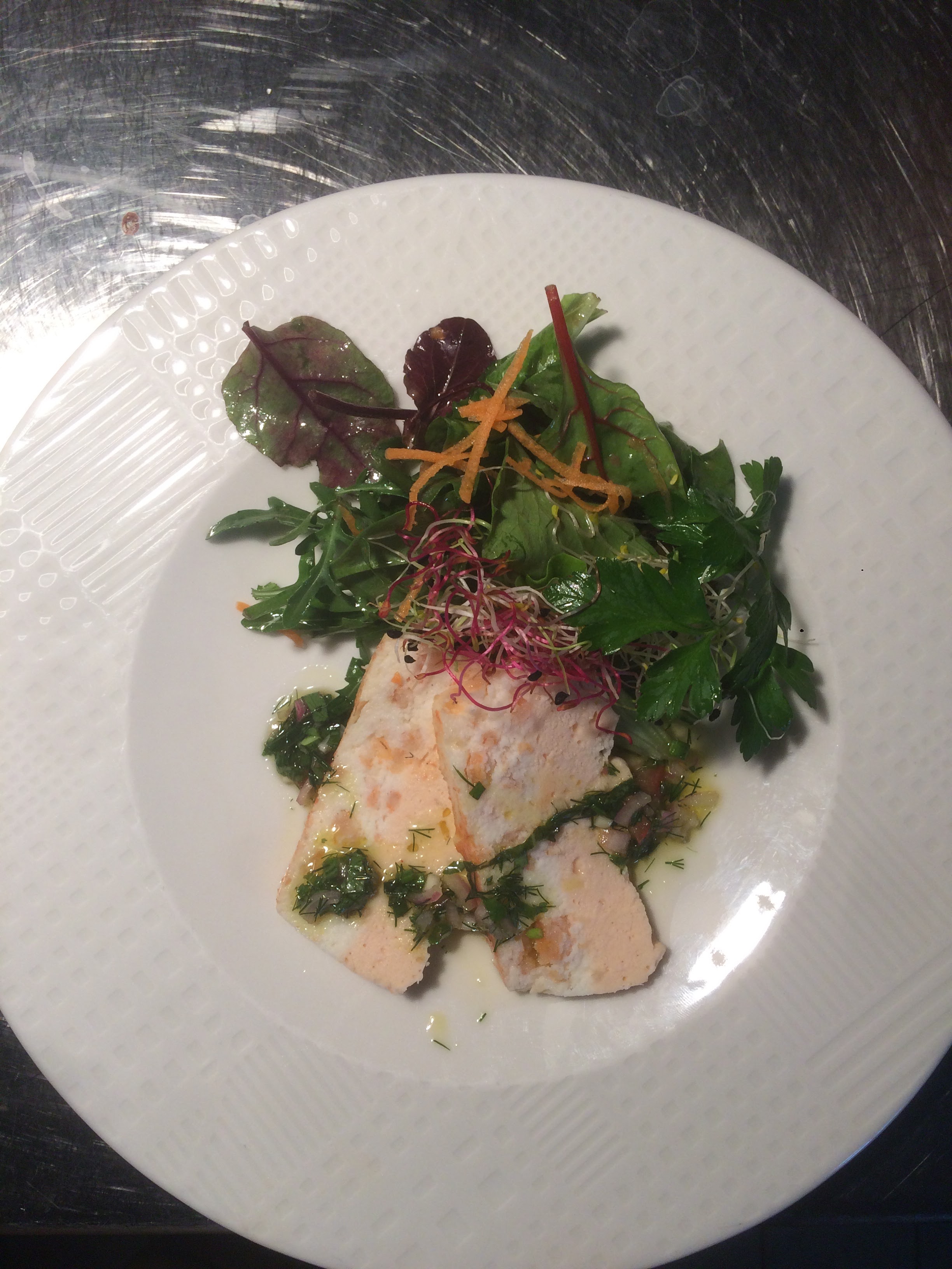 Moyen, prix du menu à 32euros avec en entrée : mille-feuille de saumon et crabe, goût assez fade. Plat : Saint-Jacques avec pesto, carré de chou fleur, purée de carotte. Manque de lien entre les ingrédients. Saint-Jacques avec corail, sable au niveau de la Saint-Jacques. Dessert : Chou fourré à la crème trop sucré. Ensemble moyen et attente très longue.
