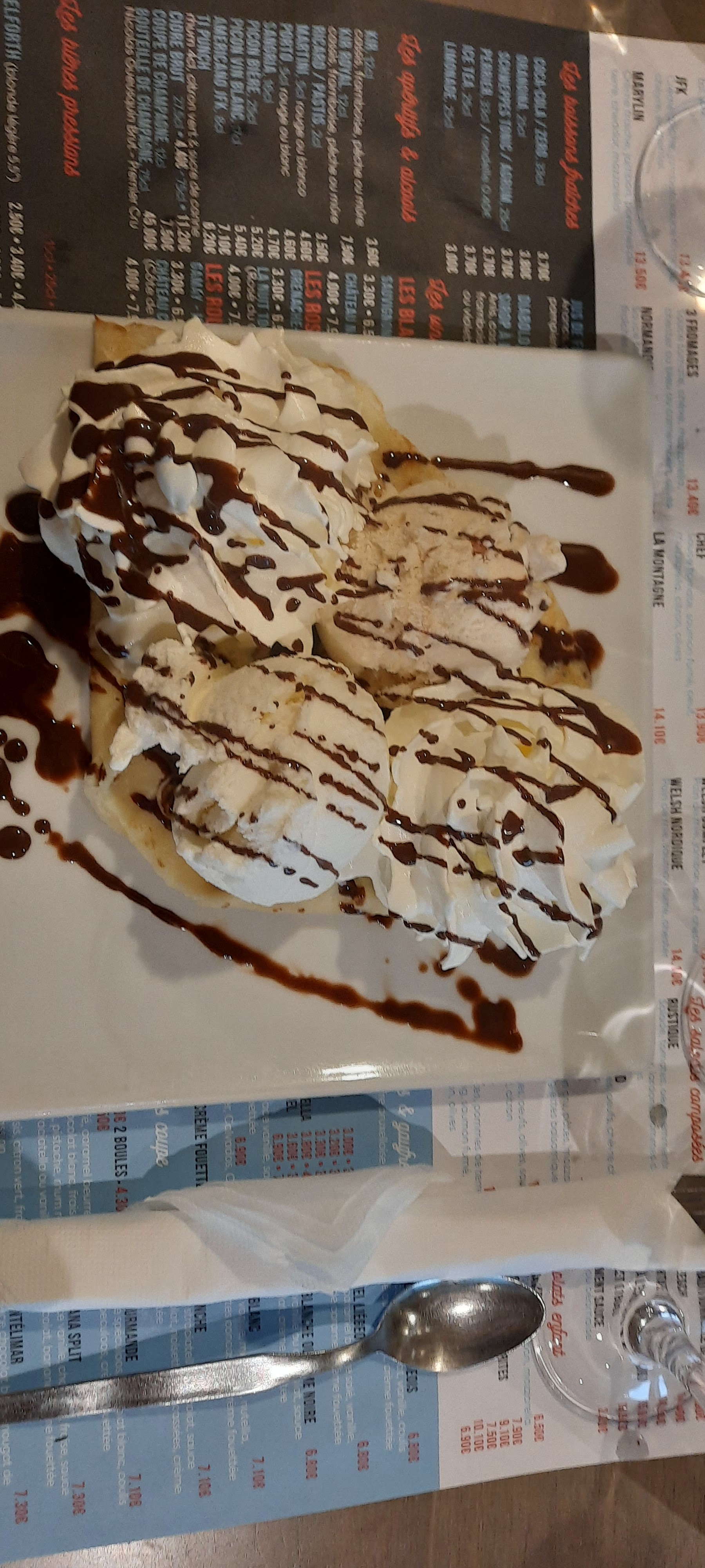 Crêpes industrielles, le chocolat pas terrible non plus!! Désolé mais je n'y retournerai plus..