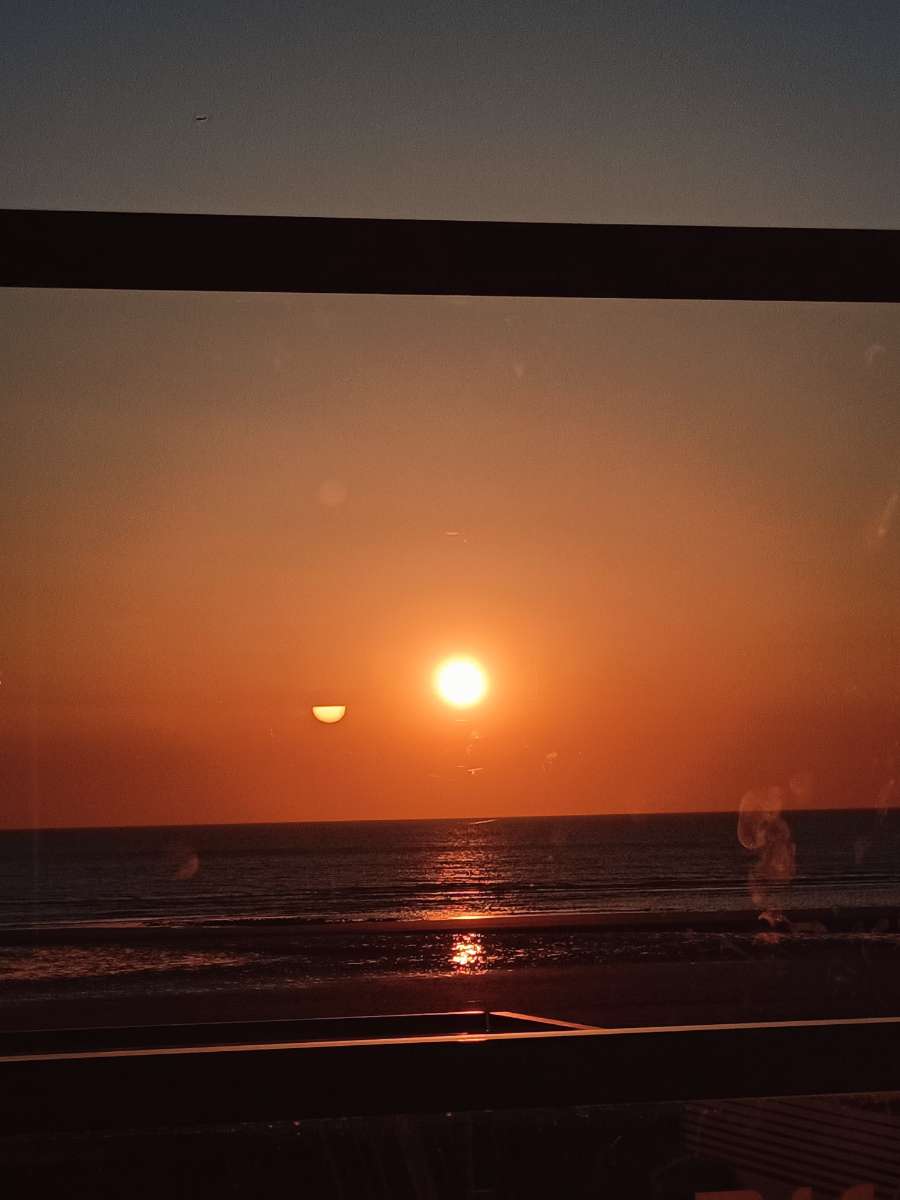 Endroit sympa pour manger sur la digue. Crêpe aussi tôt commandée, aussi tôt apportée, à se demander si elle n'avait pas été réchauffée au micro onde mais bon, elle était bonne, c'est le principal. On a mangé sur la terrasse intérieure, à côté de la fenêtre et on a été dérangé par des centaines de micro mouchettes. Pas très agréable d'en retrouver dans notre verre 😒