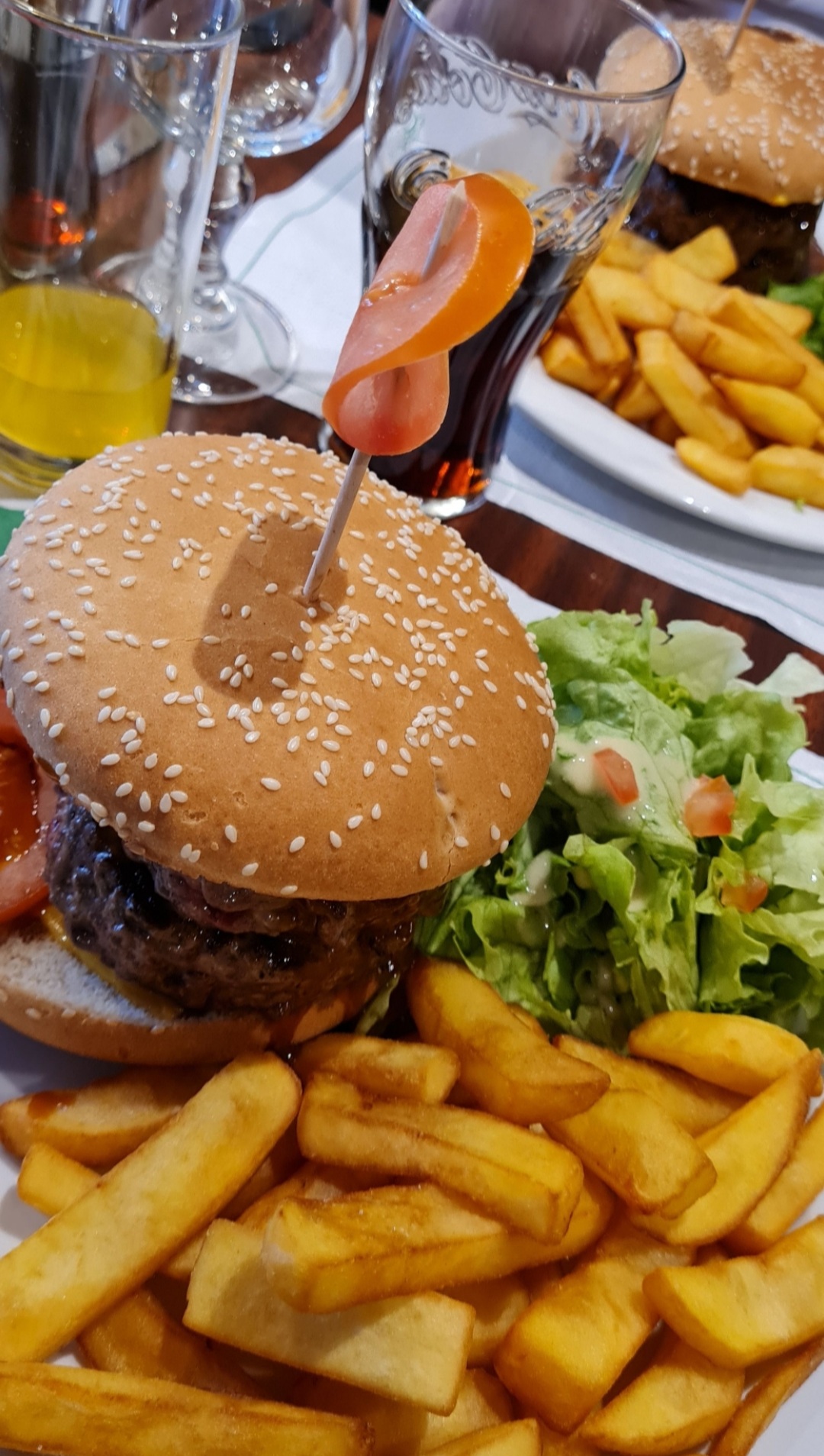 Burger très simple, viande pas assaisonnée (qui ressemblait à du bergur charal ou surgelé), cuisson demandée saignante et c'était bleu (passe encore pour moi), frite surgelée, peu de sauce dans le burger. C'est honnêtement mon plus mauvais souvenir de burger. Glace dame blanche industrielle. Il y avait un groupe de musique qui chantait, ça compensait.
