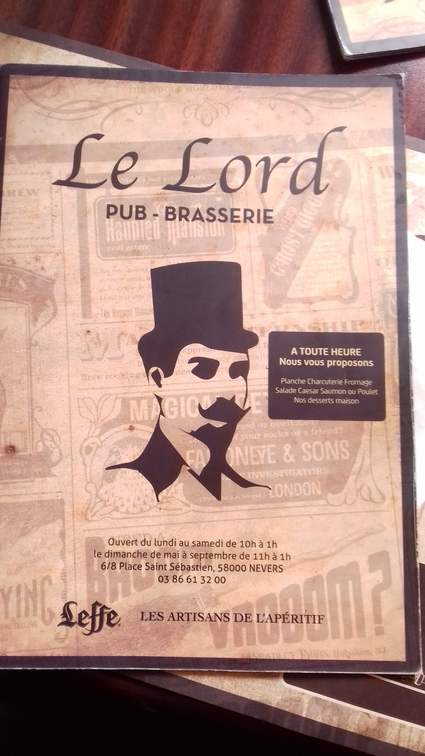 lors de notre trip du 01-02/07/2017 à Nevers nous avons fait une halte pour midi au Lord, très belle brasserie, nous avons été accueillies avec le sourire par un personnel très sympathique, l'endroit nous a plus de part sa déco Irish pub, notre serveur était aux petits soins et côté assiette rien à redire quantité qualité tout était au RDV