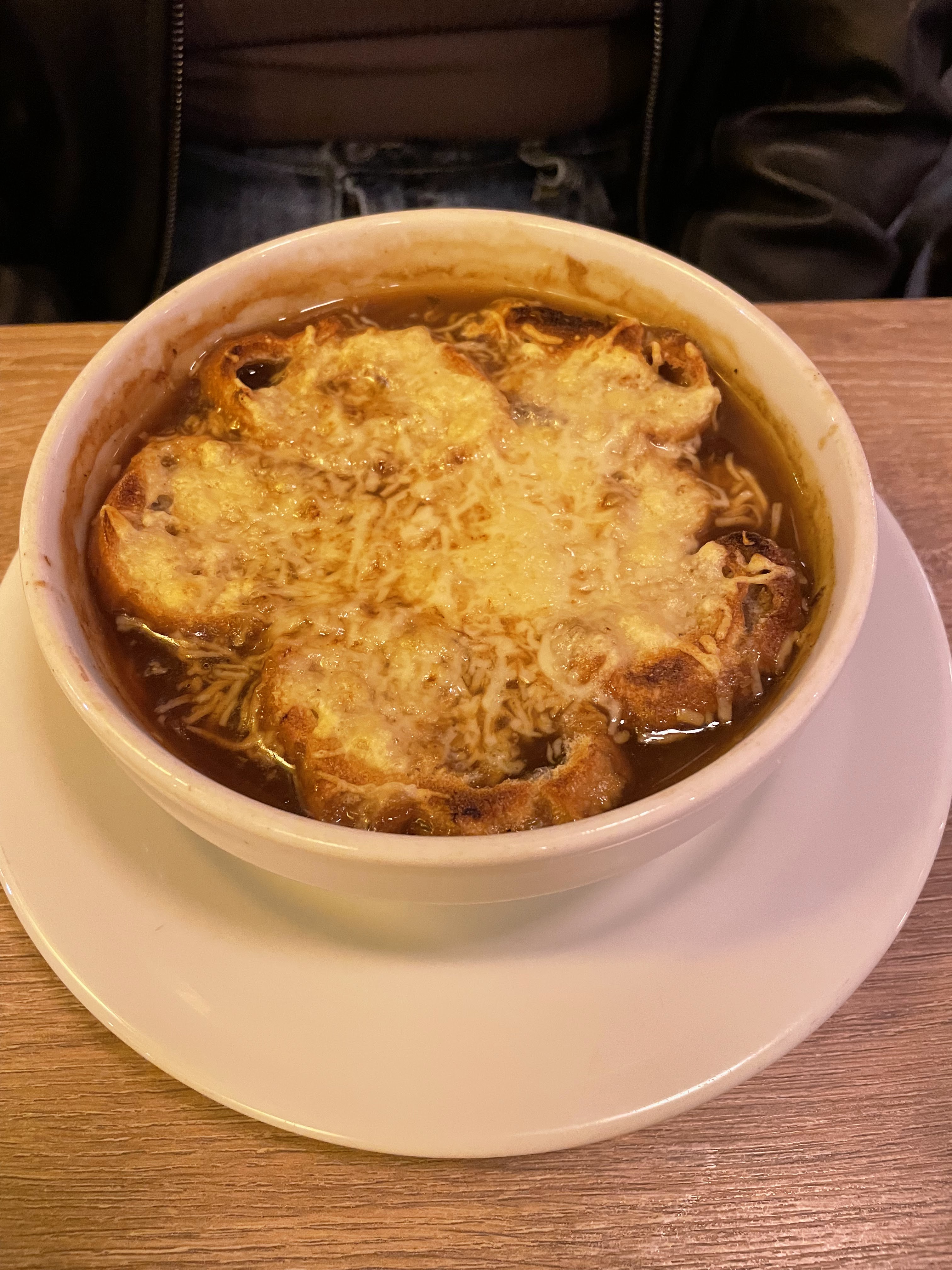 Posté le 14/09/2024 à 08:32"Bistro parisien typique. Soupes à l’oignon délicieuses !"