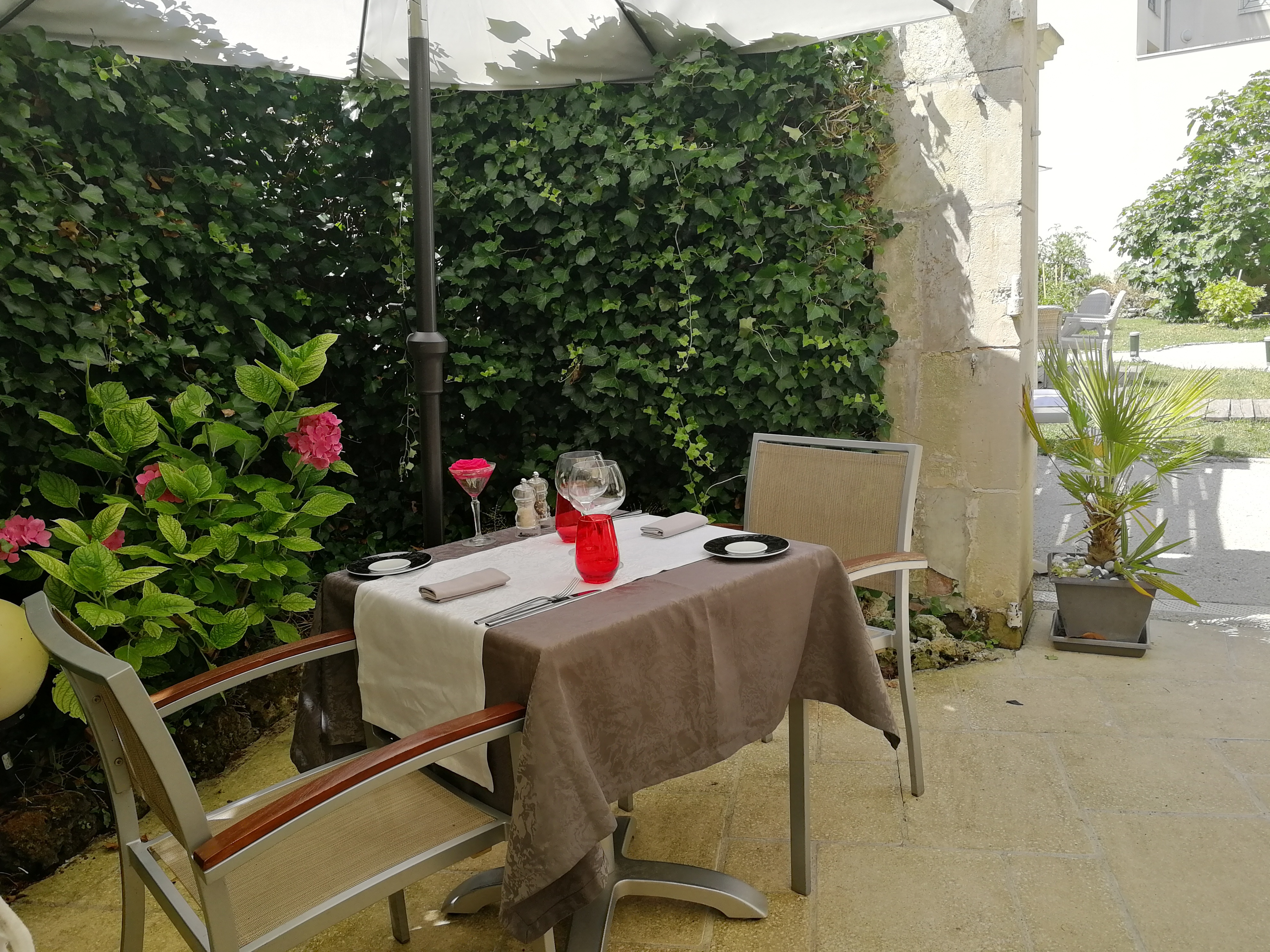 Côté Charente, l'abord peut paraître triste mais attention n'hésitez pas à pousser la porte pour découvrir un charmant patio. Ensuite laisser vous guider par un accueil sympathique et découvrez la carte et les menus. les plats sont raffinés, délicieux et très frais de l'entrée au dessert. la carte des vins est composée de très bons crus. Bref une excellente adresse. Bravo au chef et ses équipes.