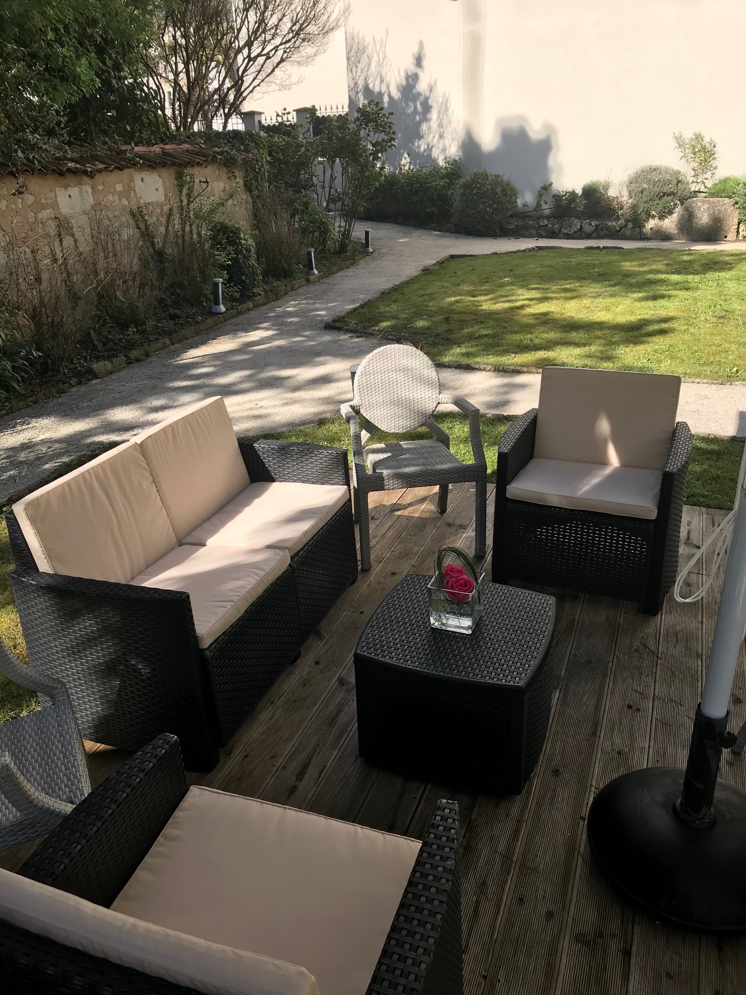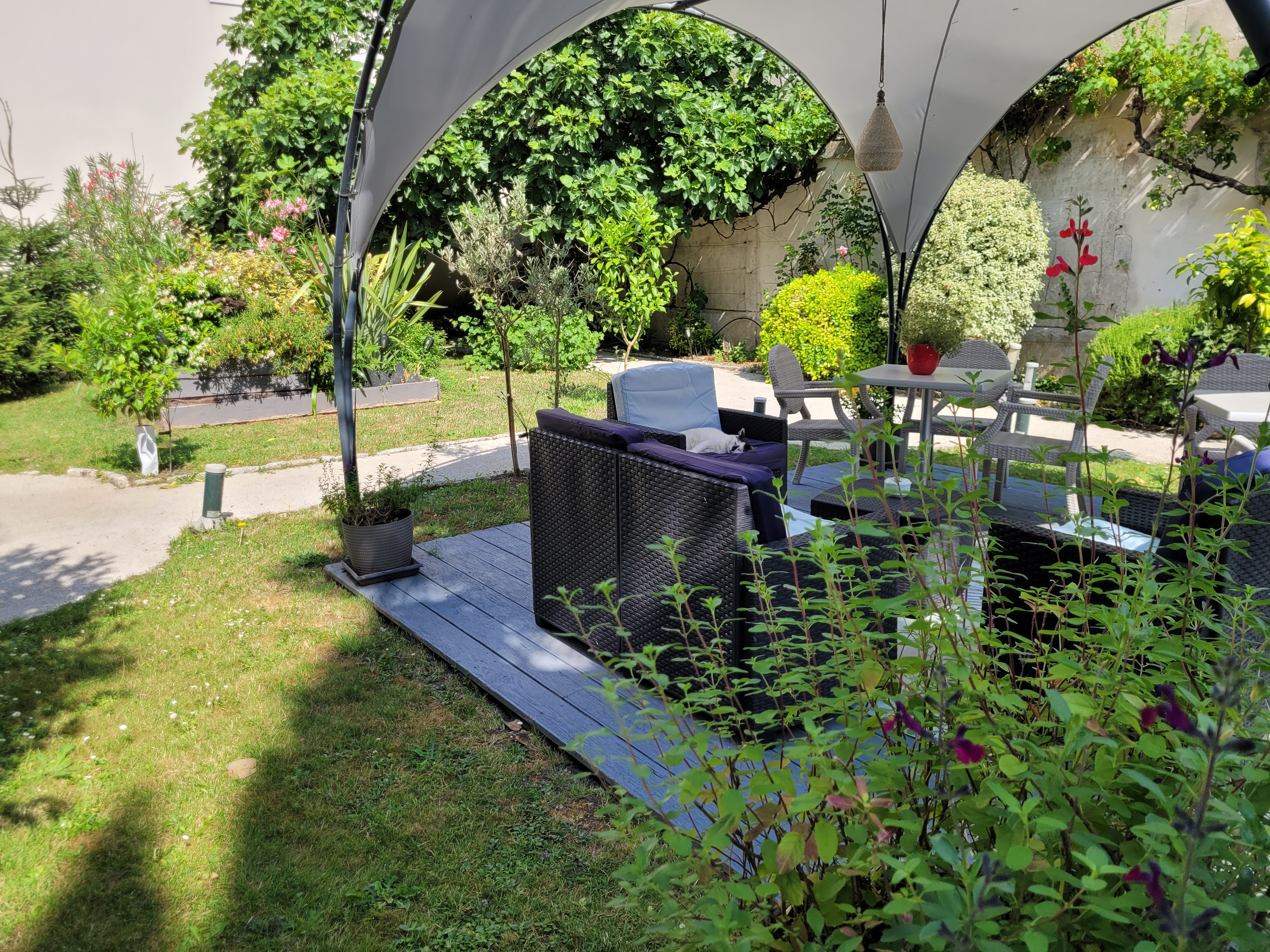Belle terrasse jardin au calme, excellente cuisine raffinée , parking à côté.