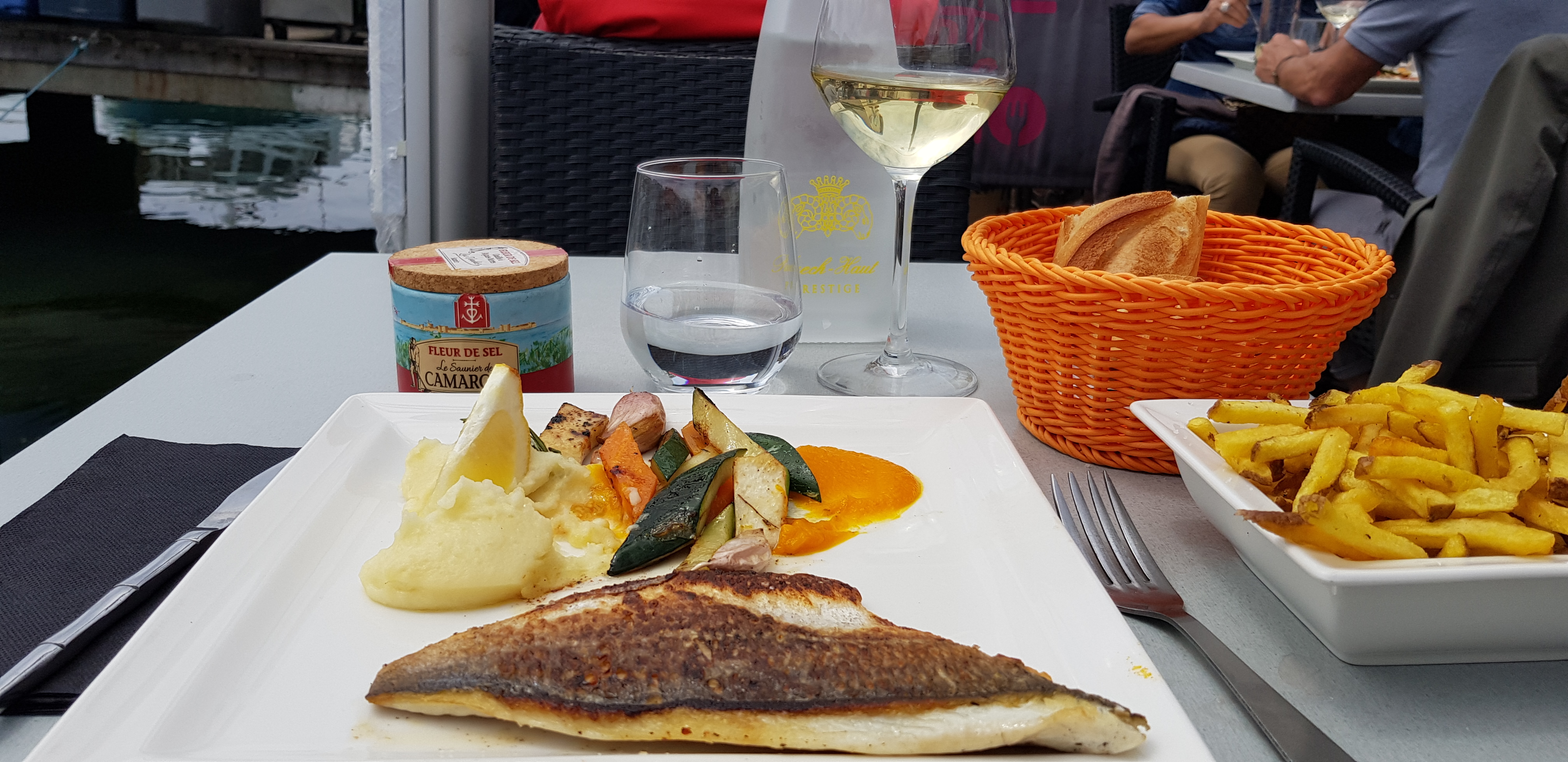 Restaurant top aussi bien la cuisine que le personnel. Petit repas au bord du chenal chauffé par un beau soleil de printemps à l'ombre d'un parasol ! nickel👌 je pense qu'il vaut mieux réserver pour être sûr d'avoir une place.