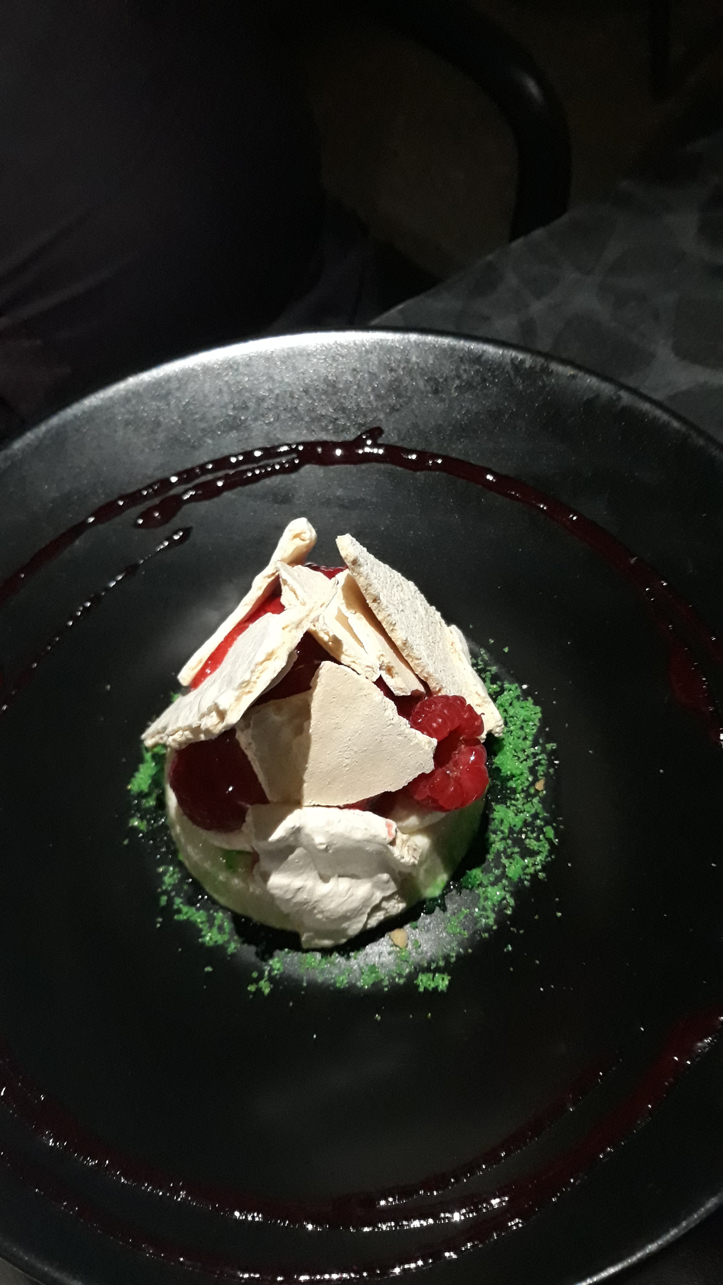 Ambiance et lieu superbe Cuisine très bien sauf le quasi de veau en cuisson lente qui n'était pas aussi tendre qu'espéré et dans les mignardises nous avons signalé des traces de moisissures sur le gâteau au chocolat . Le serveur l'a signalé au chef qui ne s'est pas déplacé et qui a simplement fait dire au serveur que c'était certainement le papier de conservation autour du gâteau qui donnait cette impression. Nous n'avons pas insisté mais nous savons reconnaître de la moisissure....voir photo... Le service moyen, la serveuse a oublié de nous présenter le menu sur l'ardoise et l'autre serveur était très expéditif. Nous reviendrons pour nous faire une nouvelle opinion car la cuisine était très bonne et originale.