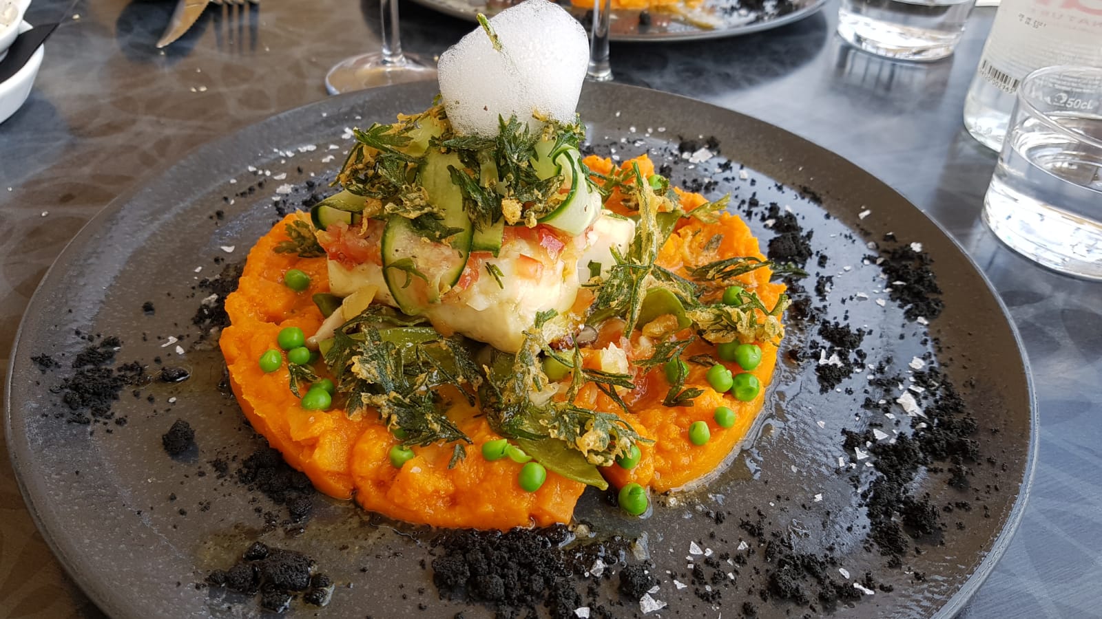 Il faudrait peut-être un peu plus de monde pour le service pendant les journées de rush, les serveurs semblaient débordés et il y avait parfois des petits couacs MAIS c'était un week-end de fête des pères donc compréhensible. Ils étaient en tout cas sympathiques et avenants. Le cadre est vraiment SUPERBE, rien à redire de ce côté là. Nous avons eu la chance d'être placés en terrasse, et quelle vue...! La cuisine, presque parfaite ! Dommage, le goût des pickles avait pris le dessus sur celui de l'espadon, poisson pourtant noble, Dommage pour ce ceviche ! Mais la sauce qui accompagnait l'agneau et ce dernier étaient délicieux 😋 Bref, la table parfaite si vous voulez en mettre plein la vue à quelqu'un ou passer un moment de qualité.