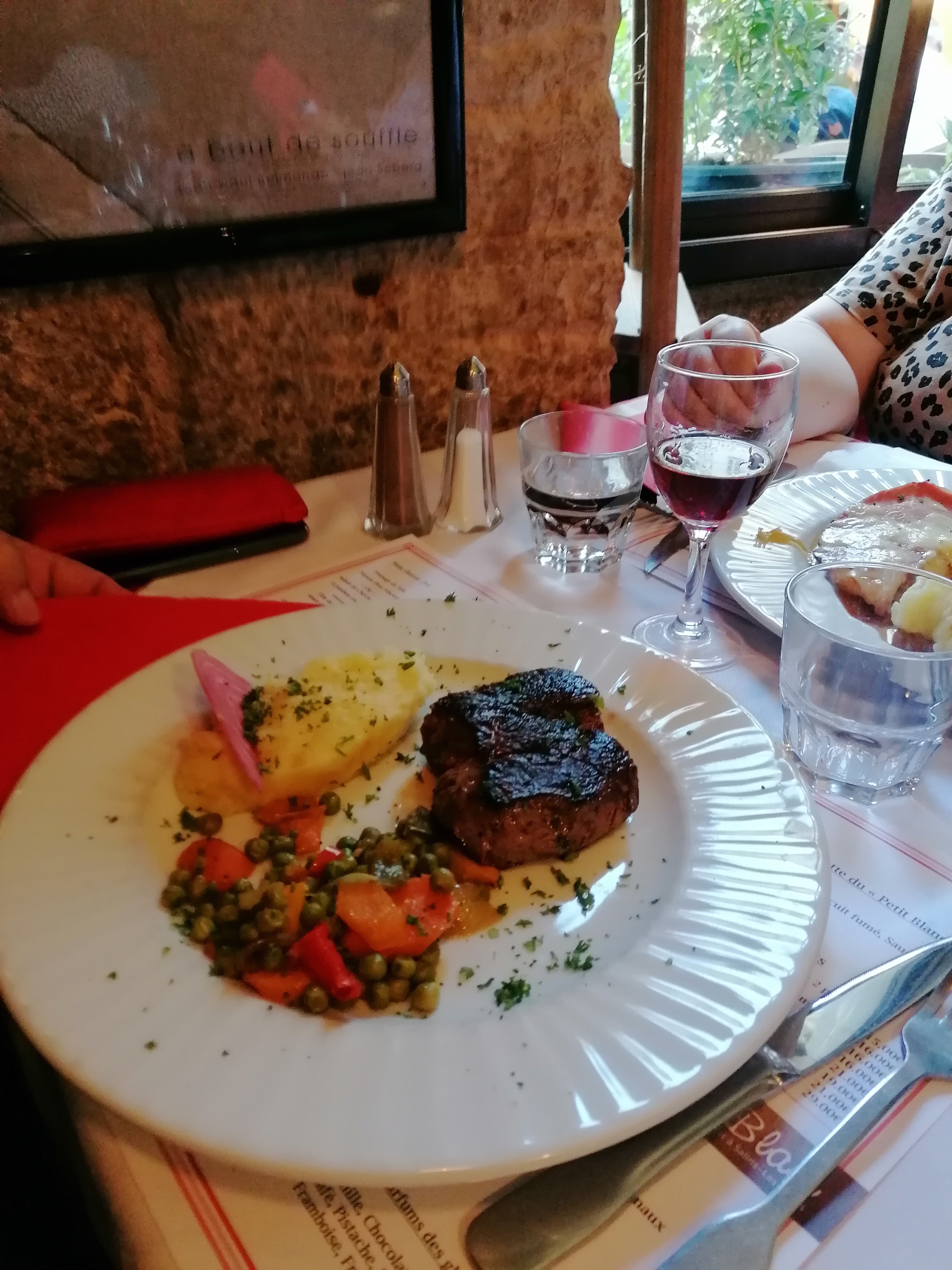 Très beau restaurant avec ses pierres et son plafond voûté. Personnelles très sympathiques souriants et agréables Le repas excellent bien présenté bien servi je me suis régalé 😍