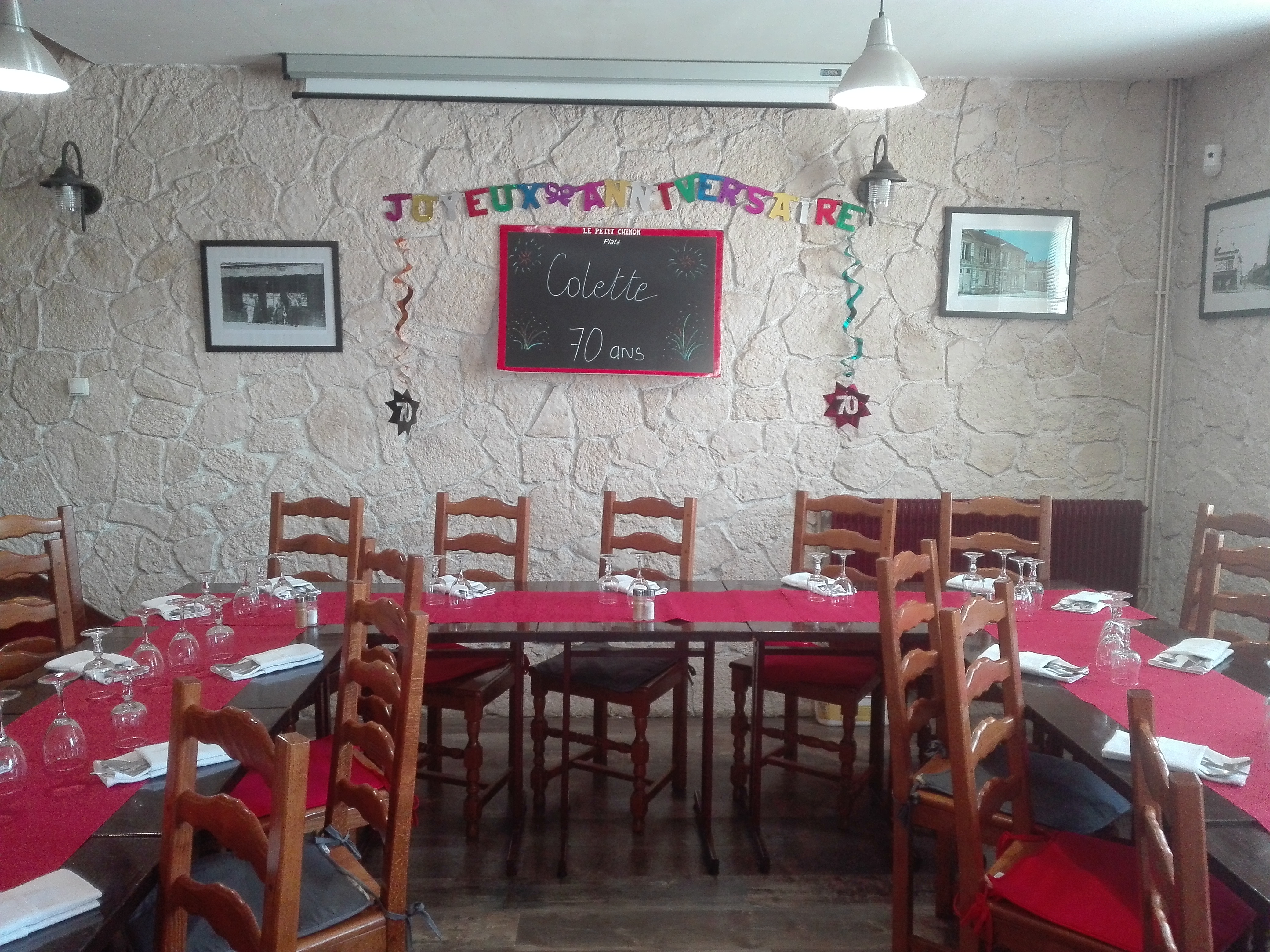 Anniversaire...20 ans de notre fils merci aux propriétaires un accueil chaleureux et familiale une cuisine au top une salle de restaurant agréable...on est accueilli comme à la maison.une vrai découverte le petit chinon et j'y retournerai avec PLAISIR