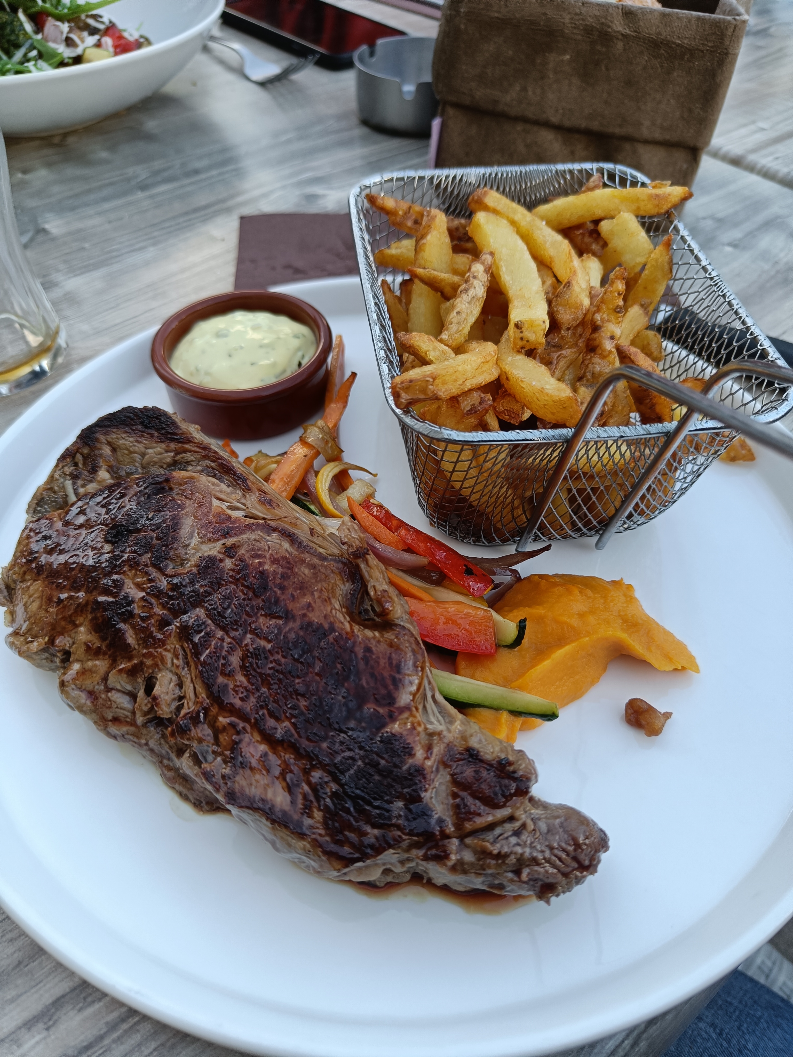 Délicieux restaurant aux prix raisonnables et à l'emplacement très agréable. La salade gourmande est généreuse, les produits frais et de qualité, l'assaisonnement également très bon. Le pain du burger est fait maison, le steak et la sauce goûteux. Je vous conseille de réserver avant de venir, la terrasse est rapidement pleine. Nous reviendrons !