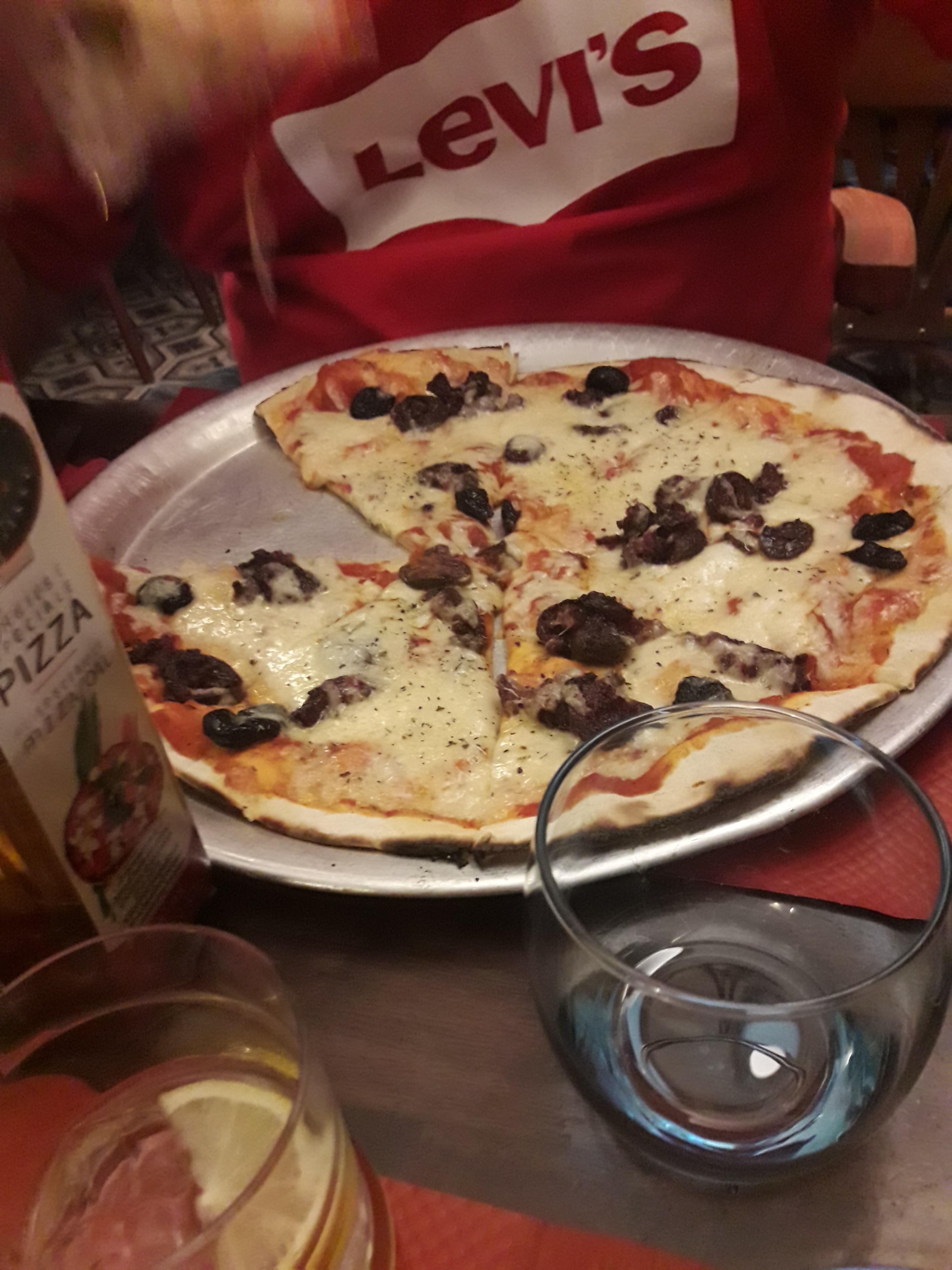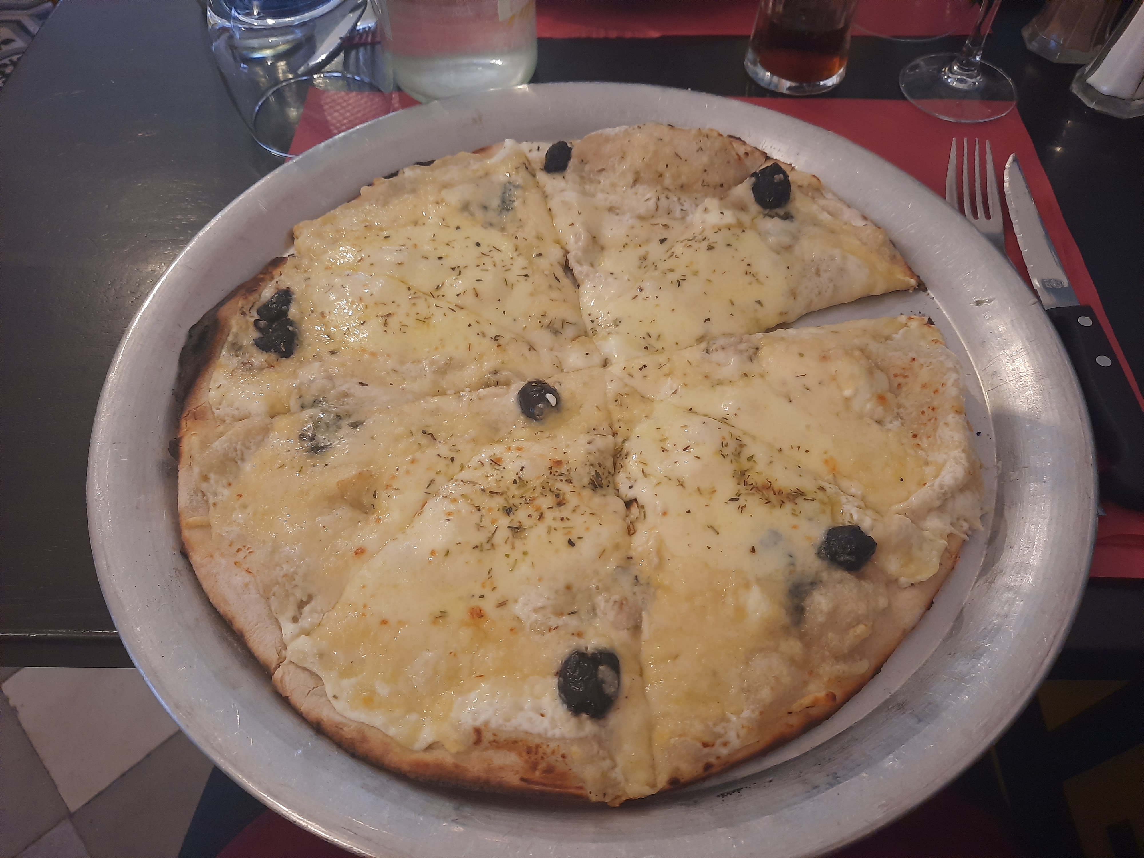 Belle terrasse, serveuse très agréable. Les pizzas sont généreuses mais malheureusement celle au chorizo n a pas le goût du chorizo mais du jambon cru cuit et celle au 4 fromages, peu de goût et beaucoup trop d'emmental ( oui pas vraiment le fromage que l'on attend sur cette pizza) qui devient élastique en refroidissant et difficile à digérer.