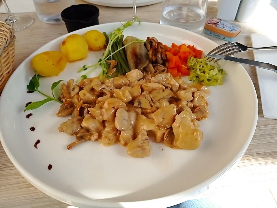 Bon plat copieux meme en demi portion. Dessert excellent (un merveilleux) service rapide. Bon acceuil. Decoration originale. Il manque juste un menu style entrée plat dessert.