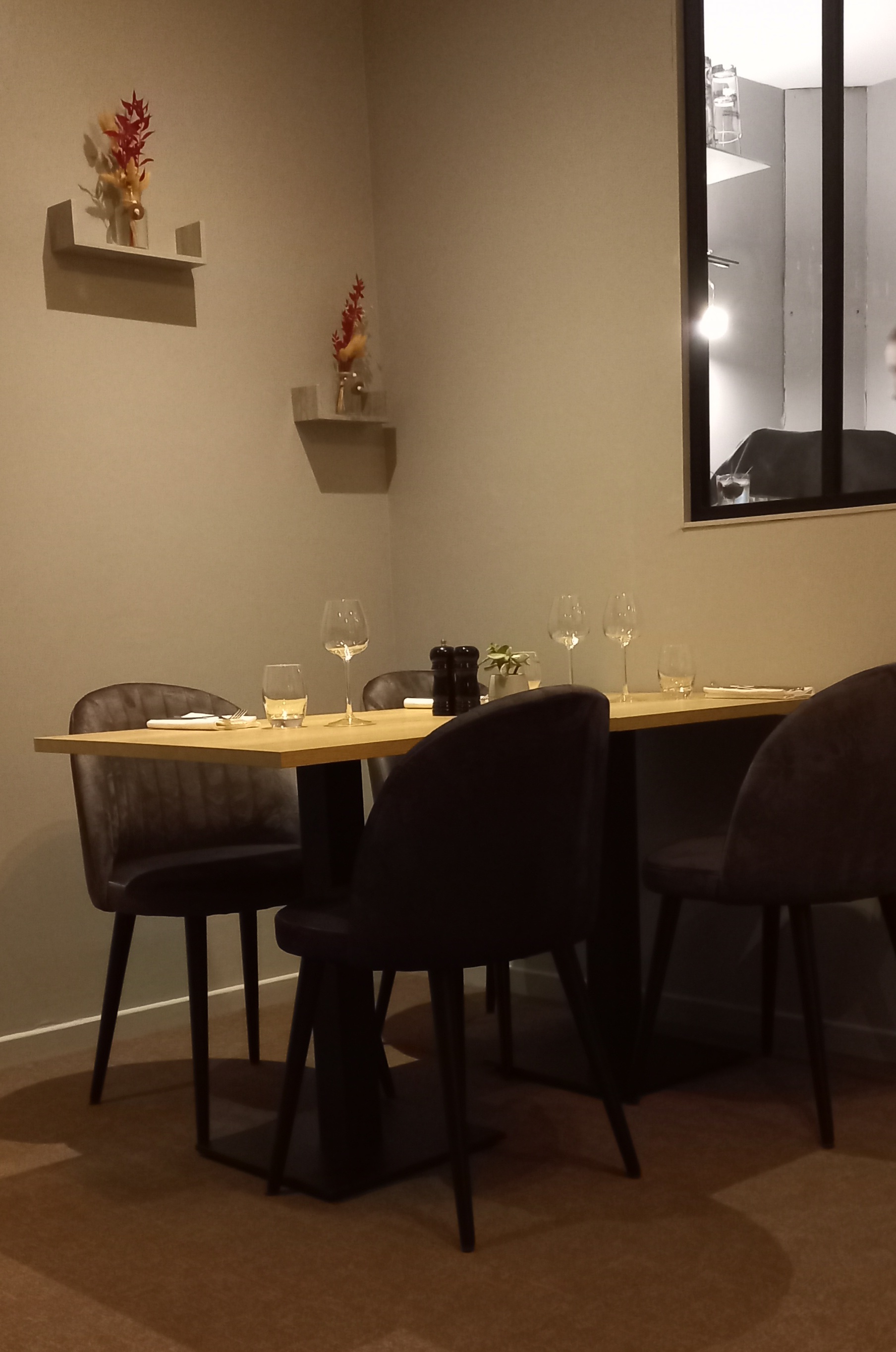 Posté le 10/11/2022 à 18:00"Cadre sobre et accueil chaleureux. Cuisine délicieuse et conseils mets et vins pertinents. J'ai passé une excellente soirée et je reviendrai à n'en pas douter !!!"