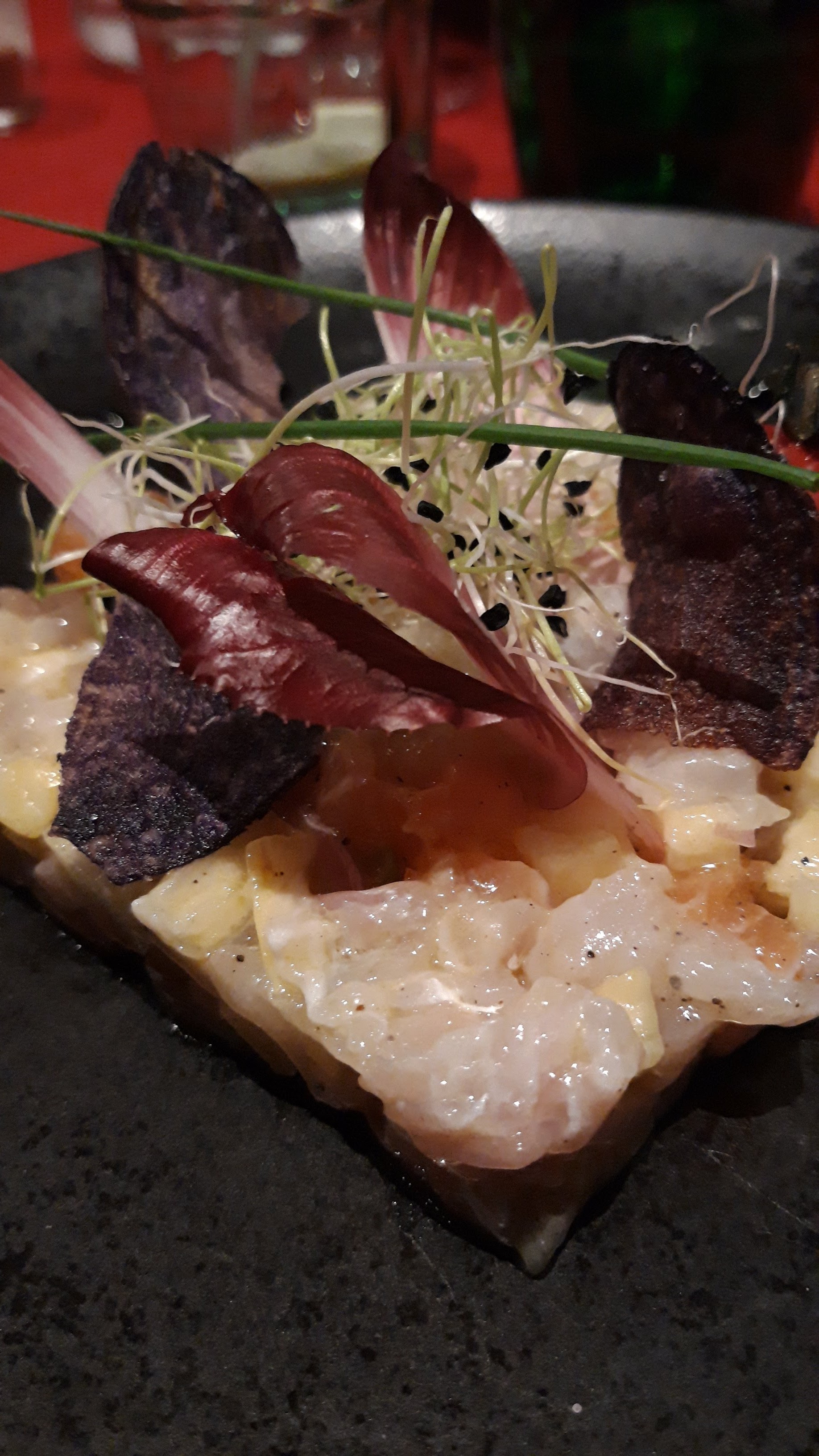 L'intérieur est joliment décoré, c'est moderne. Le serveur est très agréable. La nourriture est bien présenté et est très bonne je trouve. Le seul point négatif qui fait que je ne mets que 4 étoiles c'est que le service entre les plats était quand même très long, du moins pendant la période post confinement.