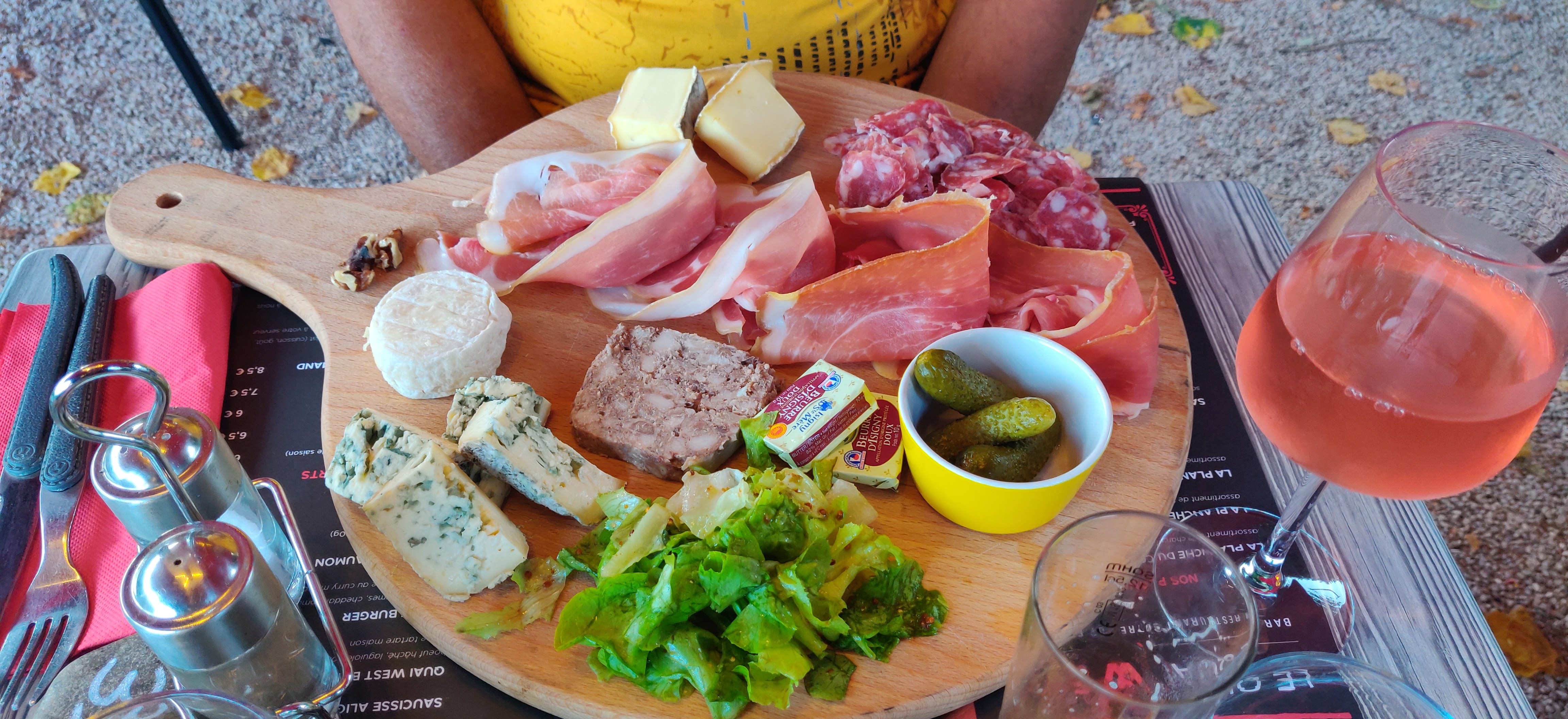 Une planche mixte et un apéritif (avant le cinéma) : vraiment très sympa, hier soir, en bord de Lot, lieu à la fois calme et animé, une belle soirée d'août. De la bonne charcuterie, du bon fromage et un bon vin blanc du coin...what else? 😊👍