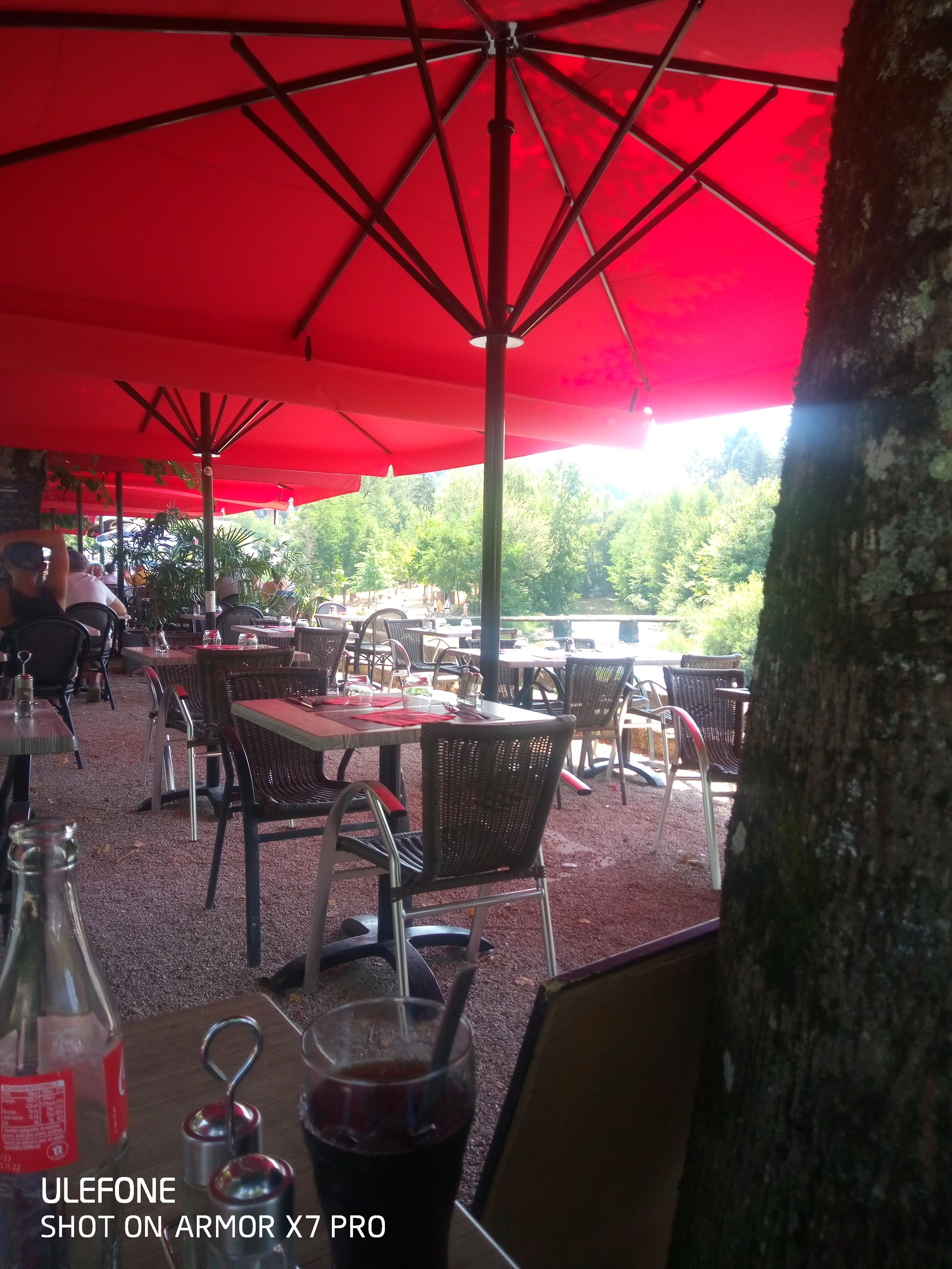 Apres des mois de confinement, crise sanitaire, cet endroit est parfait ! Une grande terrasse calme au bord d'une rivière sous de grands parasols rouges, Service et carte au top! Les plats sont copieux et savoureux , l'information d'allergie a été traitée avec sérieux, (le pain accompagnant le foie gras a été changé par sécurité).Le café gourmand pour terminer un si bon moment. Tout était parfait!