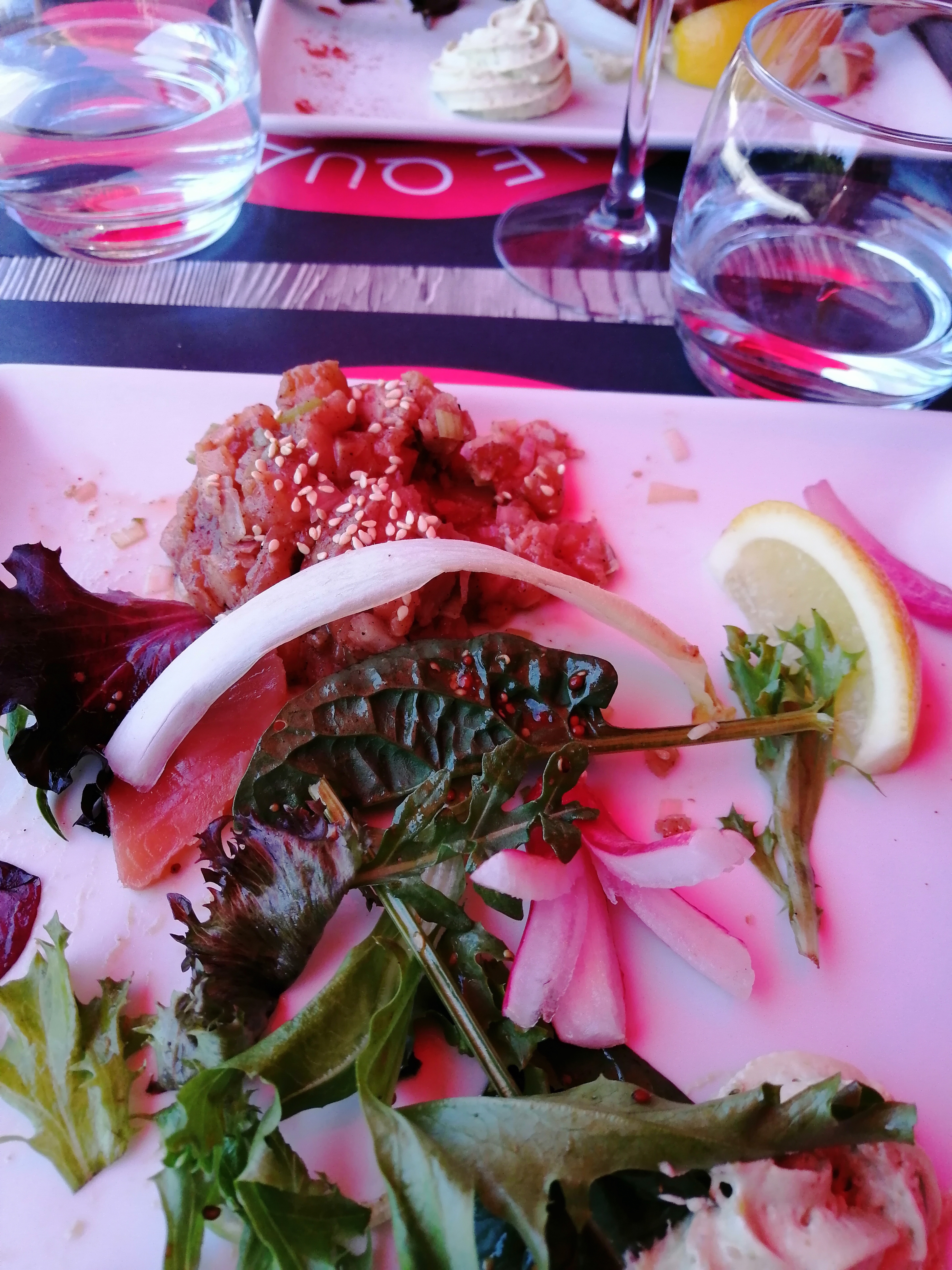 Tartare de saumon et hamburger absolument délicieux, la petite salade en garniture est bien assaisonnée et pas seulement là pour la déco de l'assiette. Très bon rapport qualité-prix !