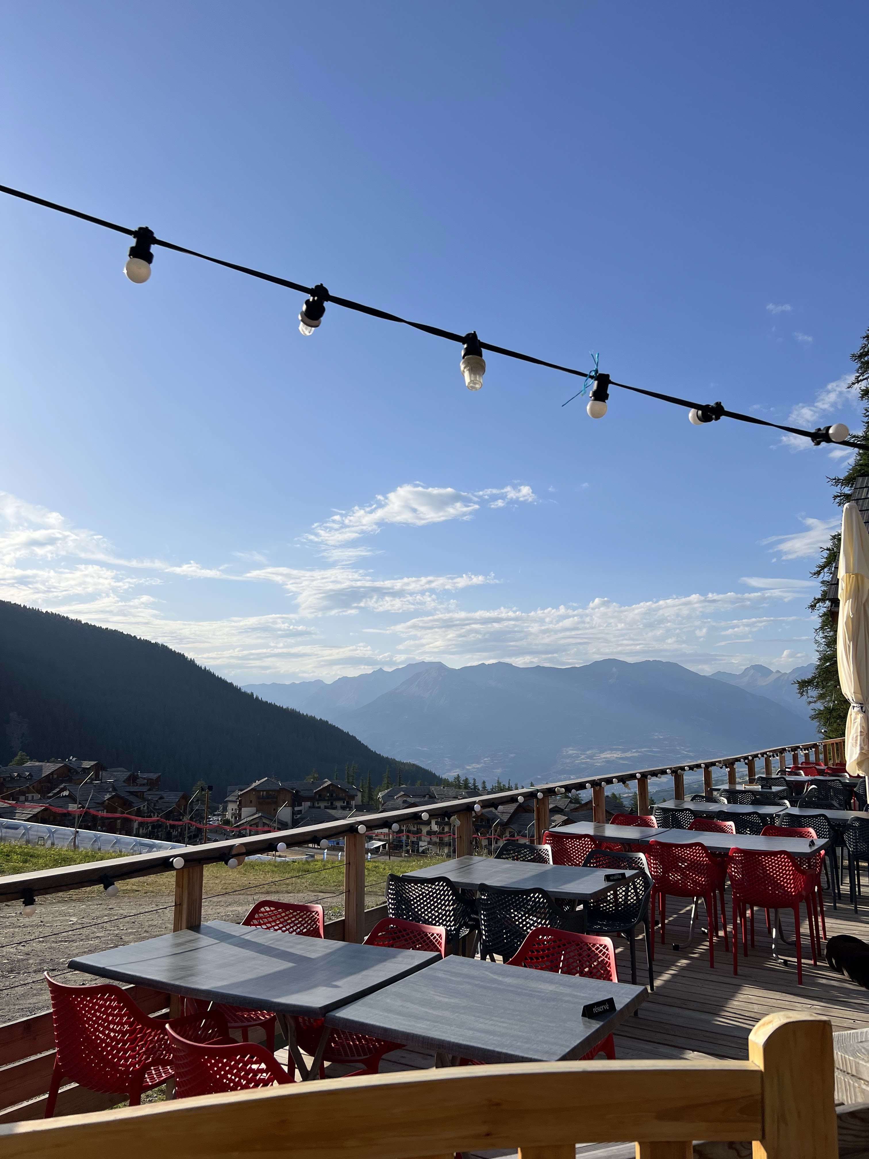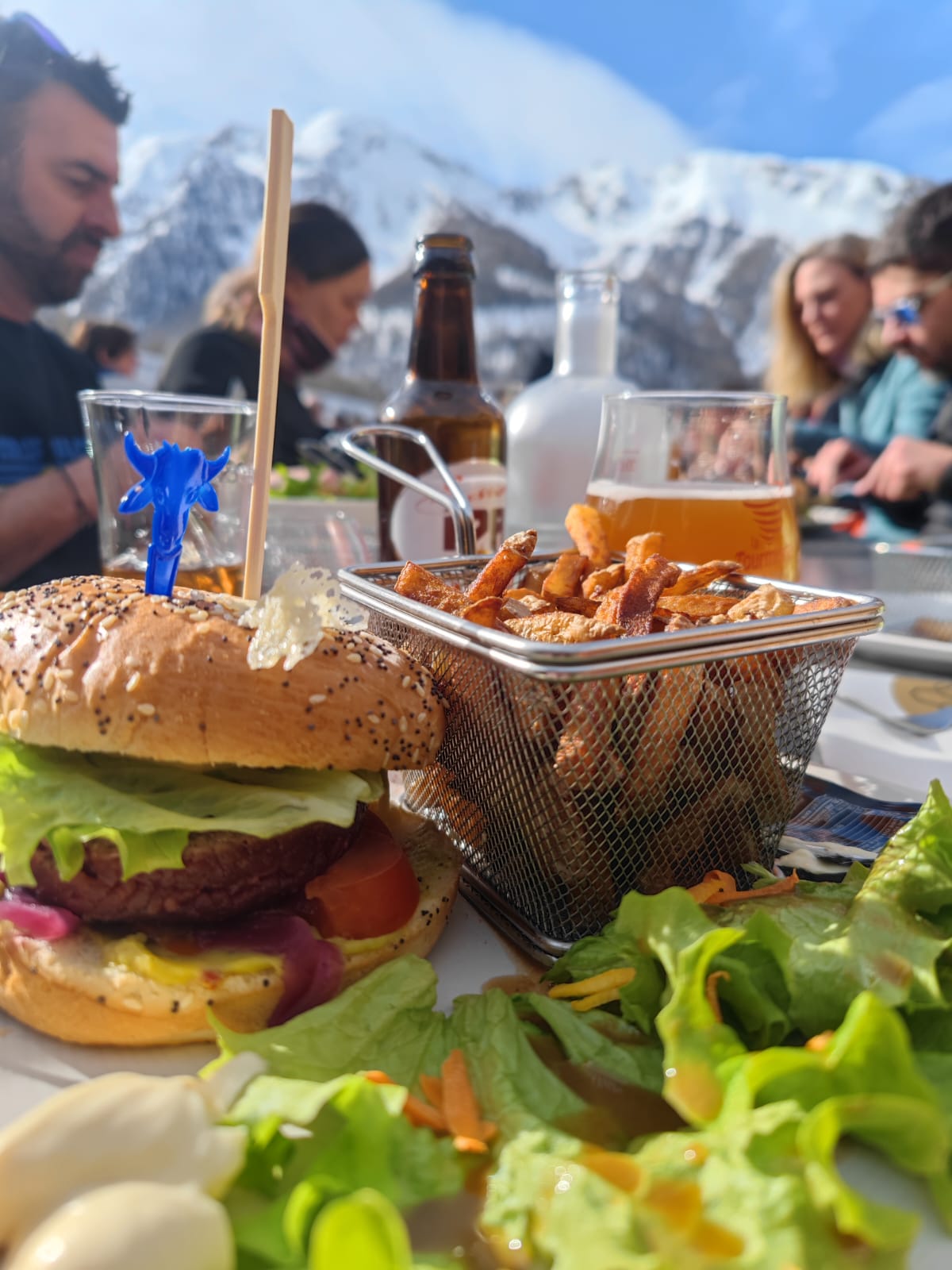 Terrasse au top. Pause de 14h pendant le ski, les frites sont incroyables, le spritz est top. Et en plus tout le monde est sympa !