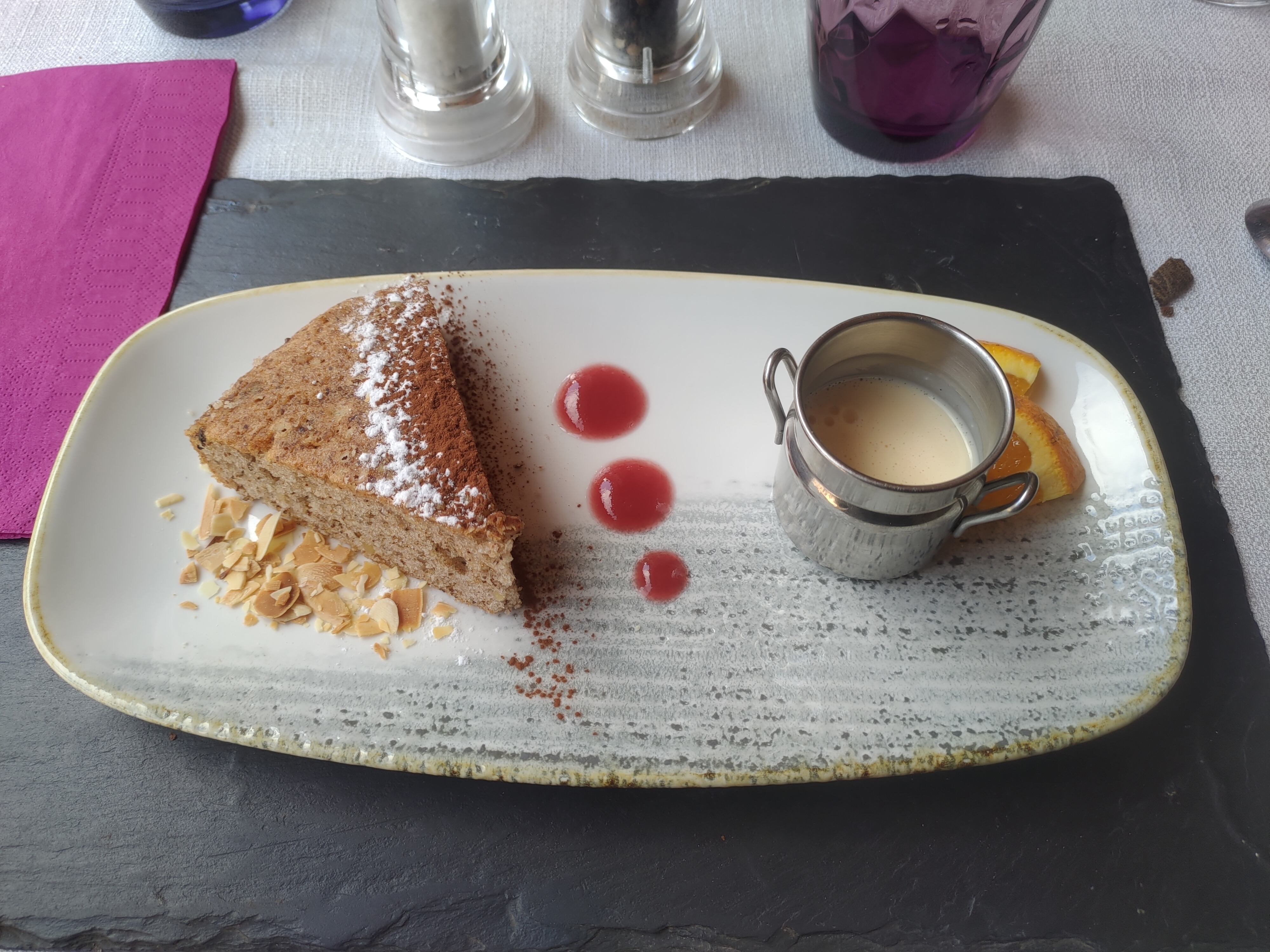 Posté le 13/01/2024 à 19:29"Cuisine excellente, les assiettes étaient bien garnies. Le service était impeccable avec un serveur très sympathique et souriant. Merci pour la poignée d'amandes cacaotées en plus avec mon café. Je recommande."