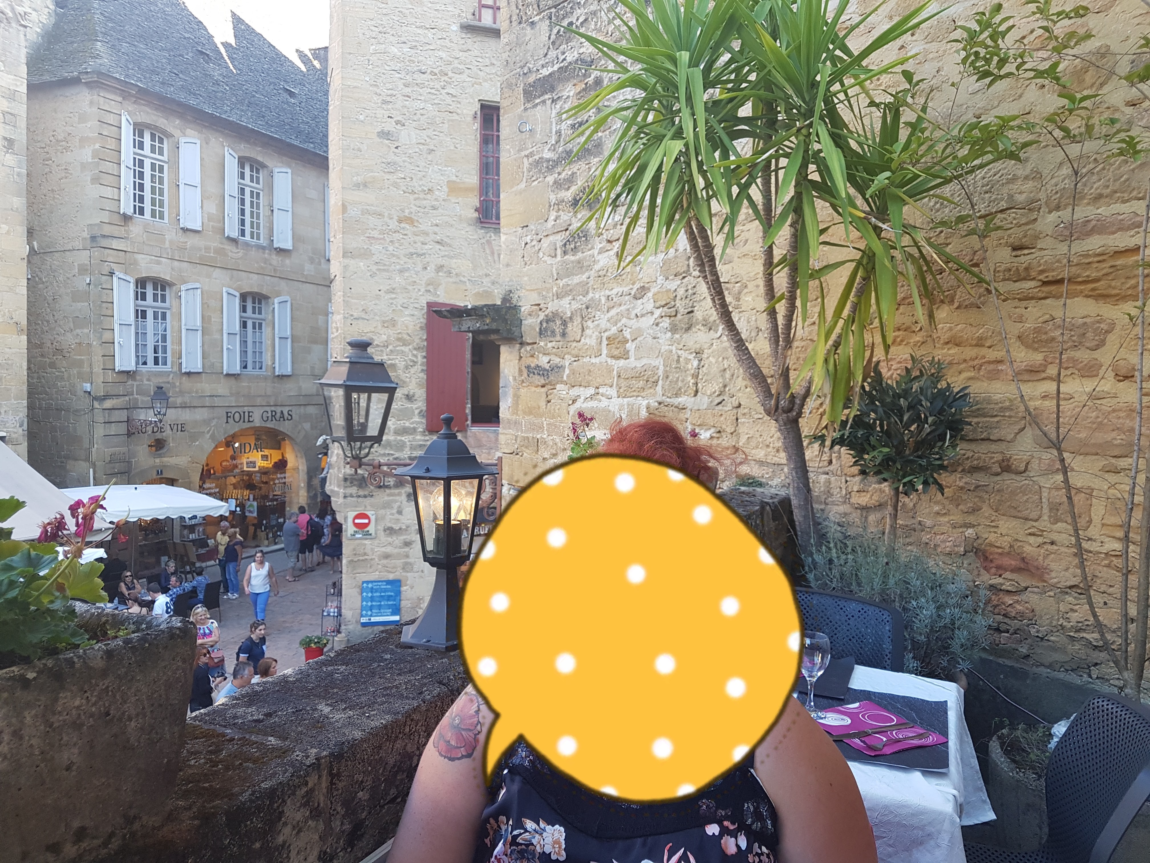Posté le 12/08/2019 à 21:58"Restaurant idéalement placer sur la place de Sarlat la Canéda, nous y avons été très bien reçu avec une réservation effectuée dans la journée pour la terrasse haute qui donne vue sur la place et ses spectacles de rue (voir photo ). nous y avons commandé une formule à 28€ et un plat à la carte, avec un apéritif, nous nous sommes régalé du début à la fin du repas, autant visuellement que gustativement, je recommande vivement ce restaurant sur Sarlat-la-Canéda, belle découverte pour nous"