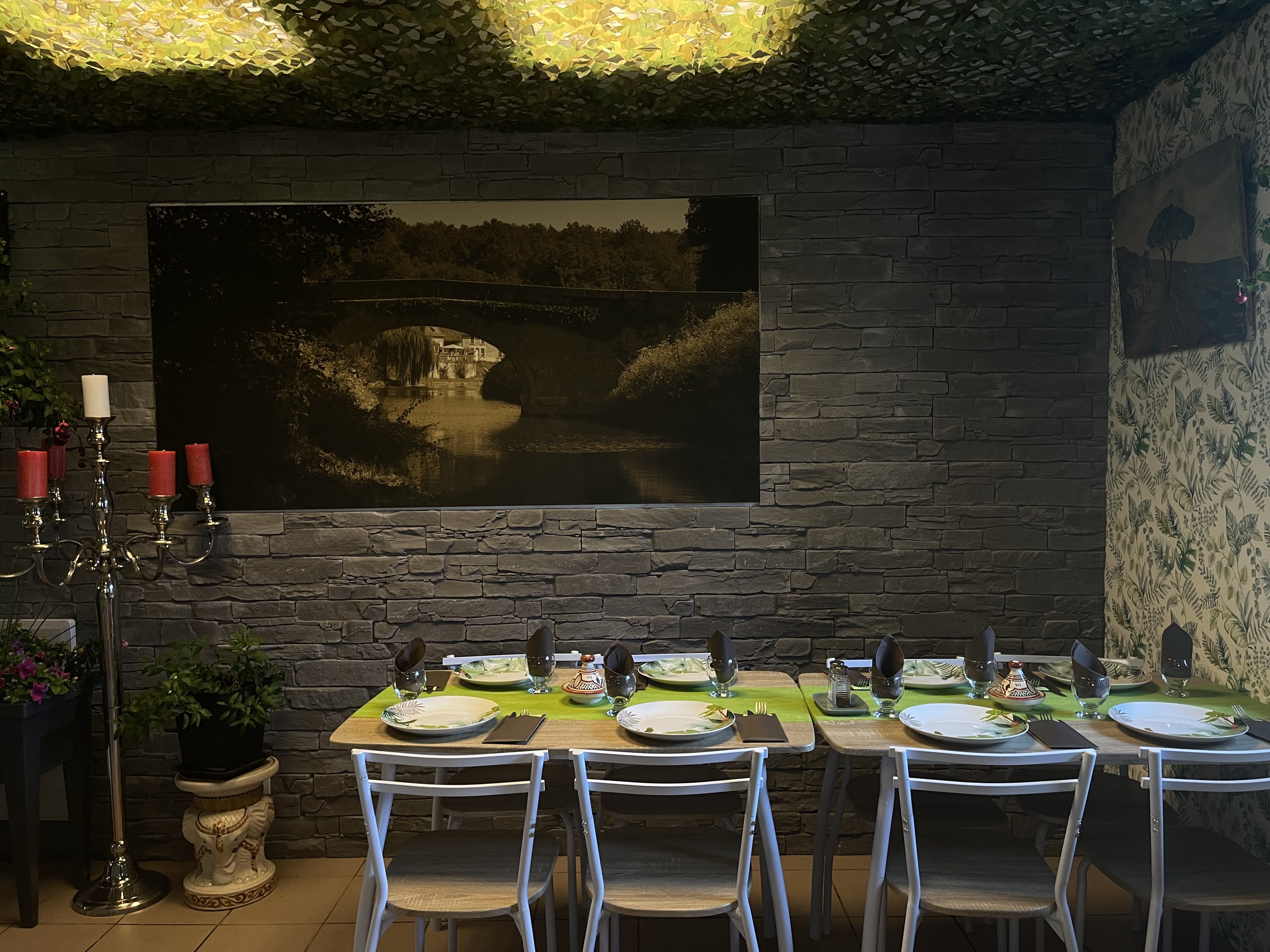 Bon accueil, déco bucolique. Déçus du repas : viande dure immangeable et gâteau fondant au chocolat encore congelé. Au final pas mangé grand chose.. Pas un geste sur la note....
