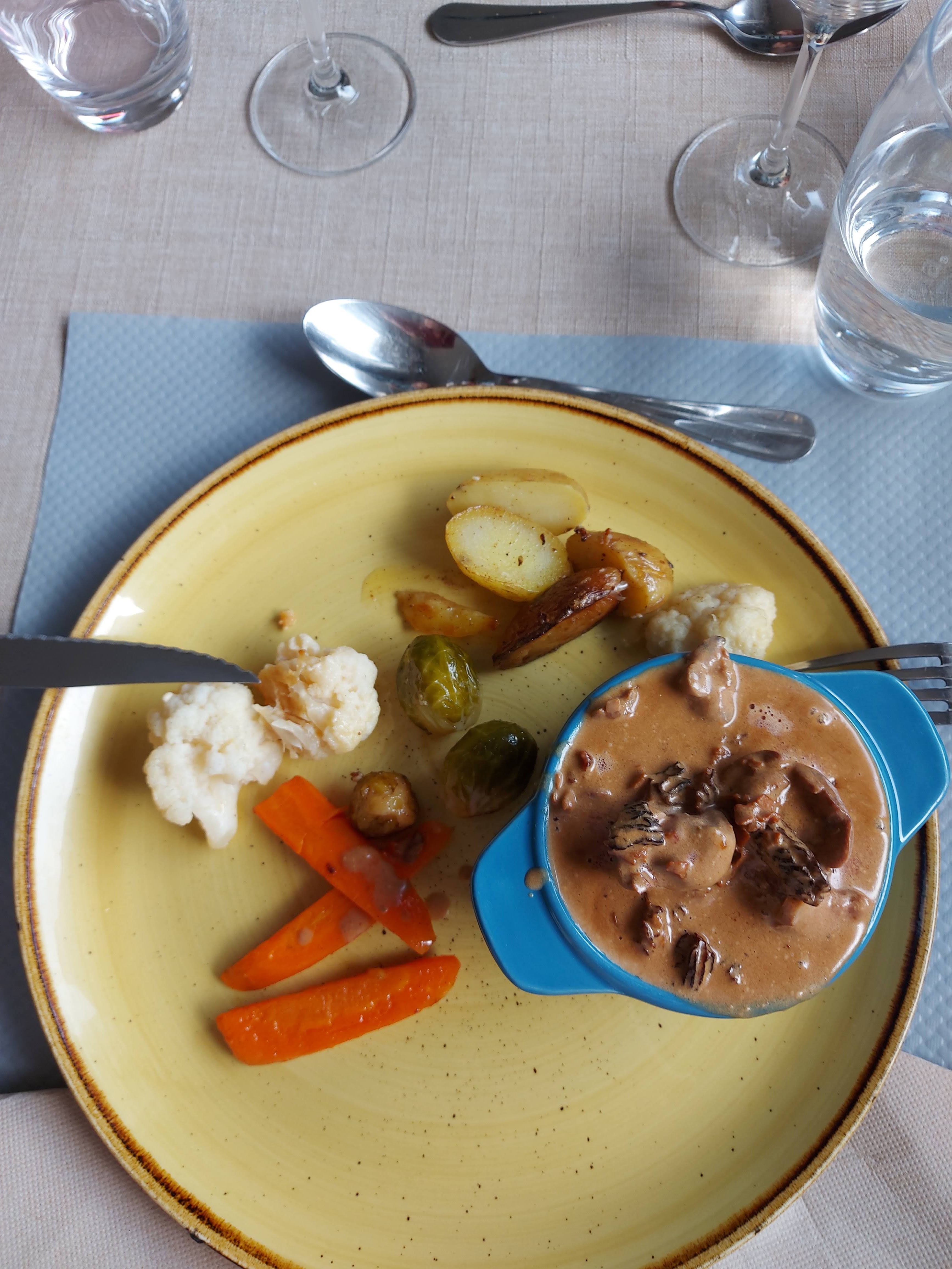 Très bon mais un peu cher mais de nos jours on n'y est pour rien !!!(inflation) mais très bon.un consei ris de veau sauce morilles un regal