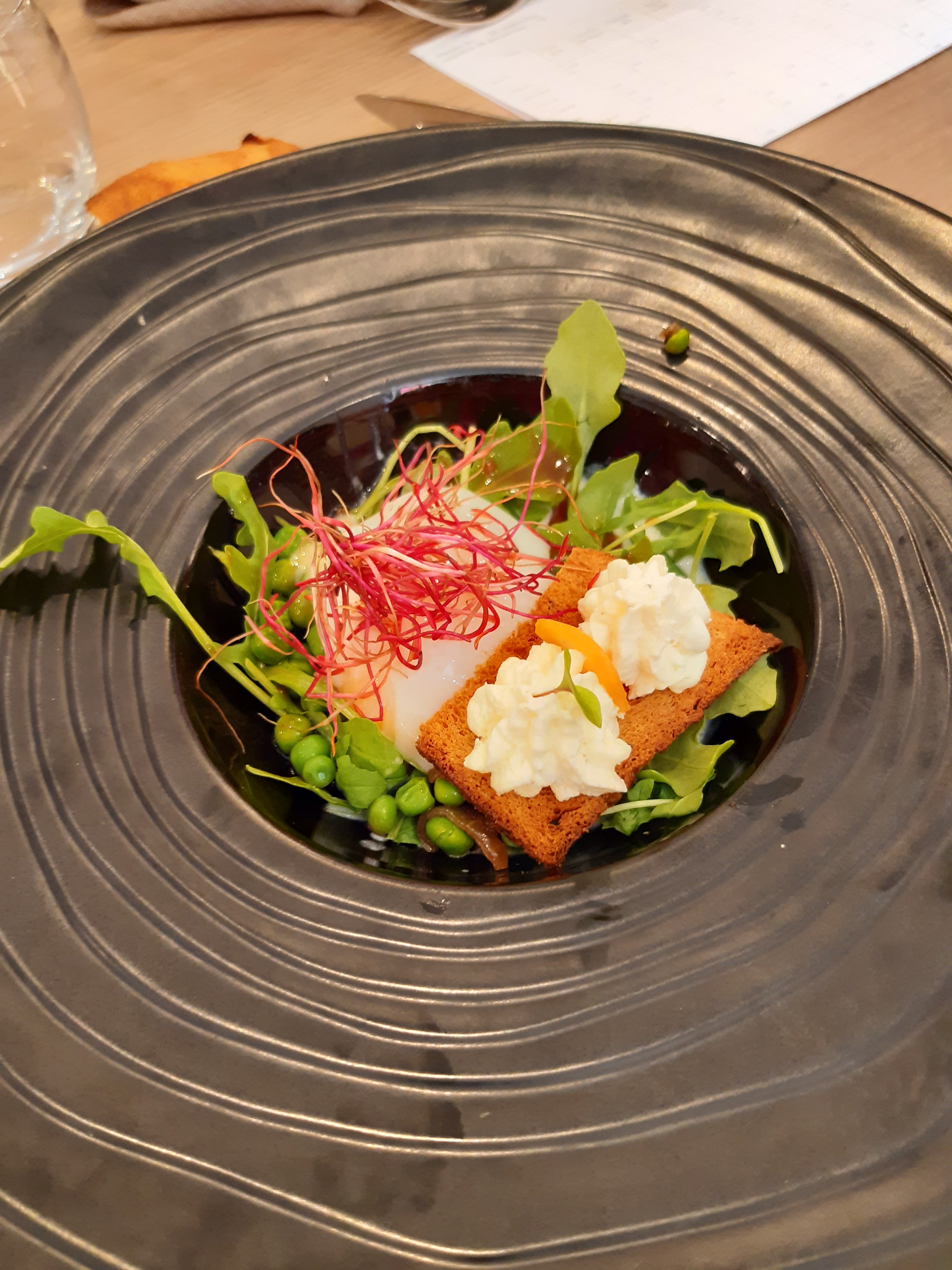 Belle découverte. Un lieu magnifique. Un service souriant et bien rythmé. Des mets bien élaborés, des cuissons bien maîtrisées. Nous nous sommes régalées. En revanche il est dommage de retrouvé le même bout de radis noir de carotte et jeune pousse de l’entrée dans tous les plats de l’entrée aux plats chauds.
