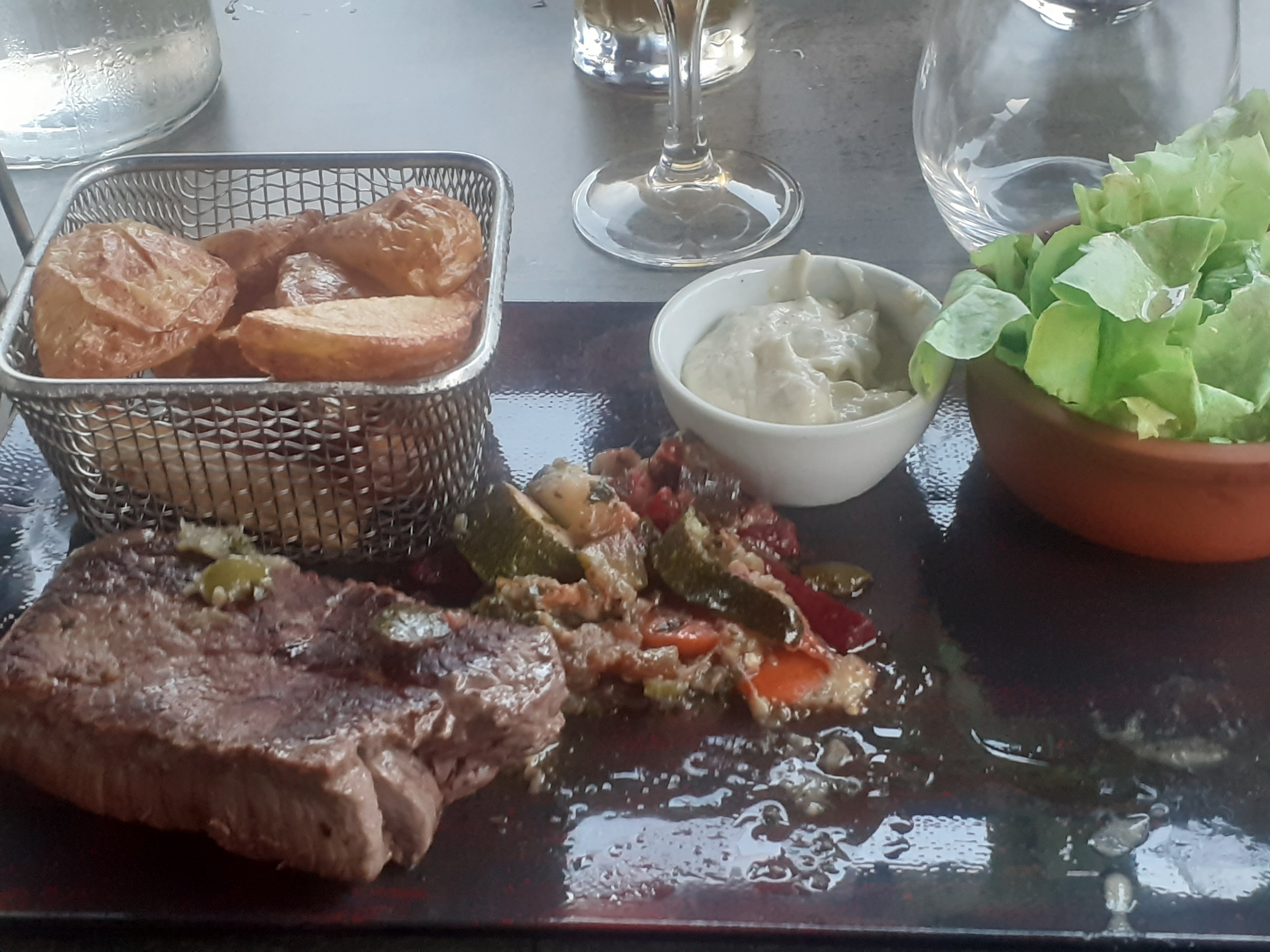 Je ne mets que 3 etoiles pour le service et l'ambiance sachant que nous etions seules une grande partie du repas donc difficile de juger objectivement cet aspect là. Frites maison exceptionnelles et mousse au chocolat tres bonne également. restaurant partenaire de l'hotel ou nous logions et ravis d'avoir ete aiguiller vers votre etablissement qui mérite le detours.