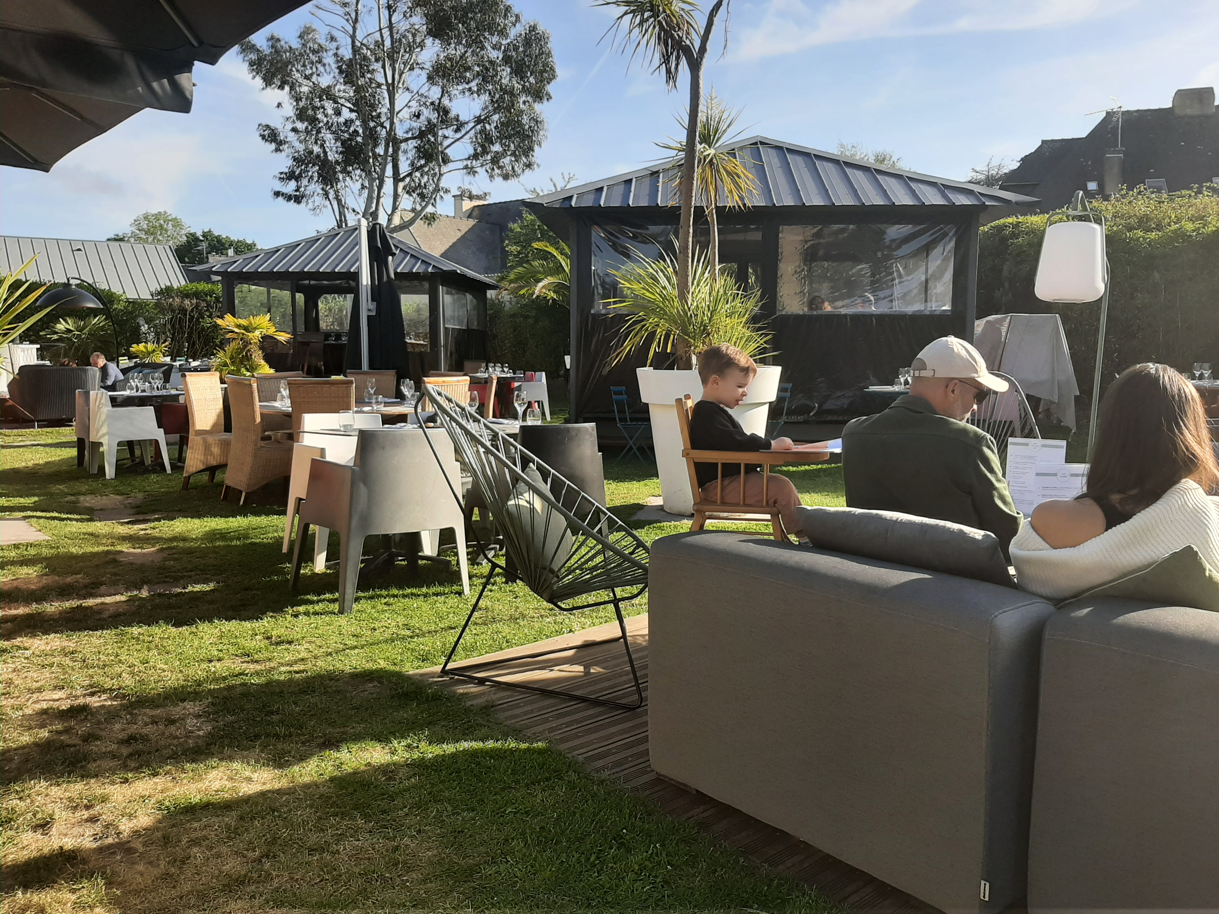 Cuisine agréable et plats rafinés. Choix de vins assez complet. Ambiance sonore très (trop !!!) inconfortable dans la grande tente à droite dans le jardin, on n'arrive pas à s'entendre malgré une accuité auditive non défaillante (50 ans...). Ambiance globale dons fatiguante : c'est dommage. Serveurs & serveuses souvent trop familiers et peu distingués, ce qui dénote fortement avec l'ambition chic détendue du lieu. Même si les recrutements sont compliqués, il faut prévoir une formation initiale et continue du personnel de salle. A corriger rapidement. Rapport qualité prix correct.