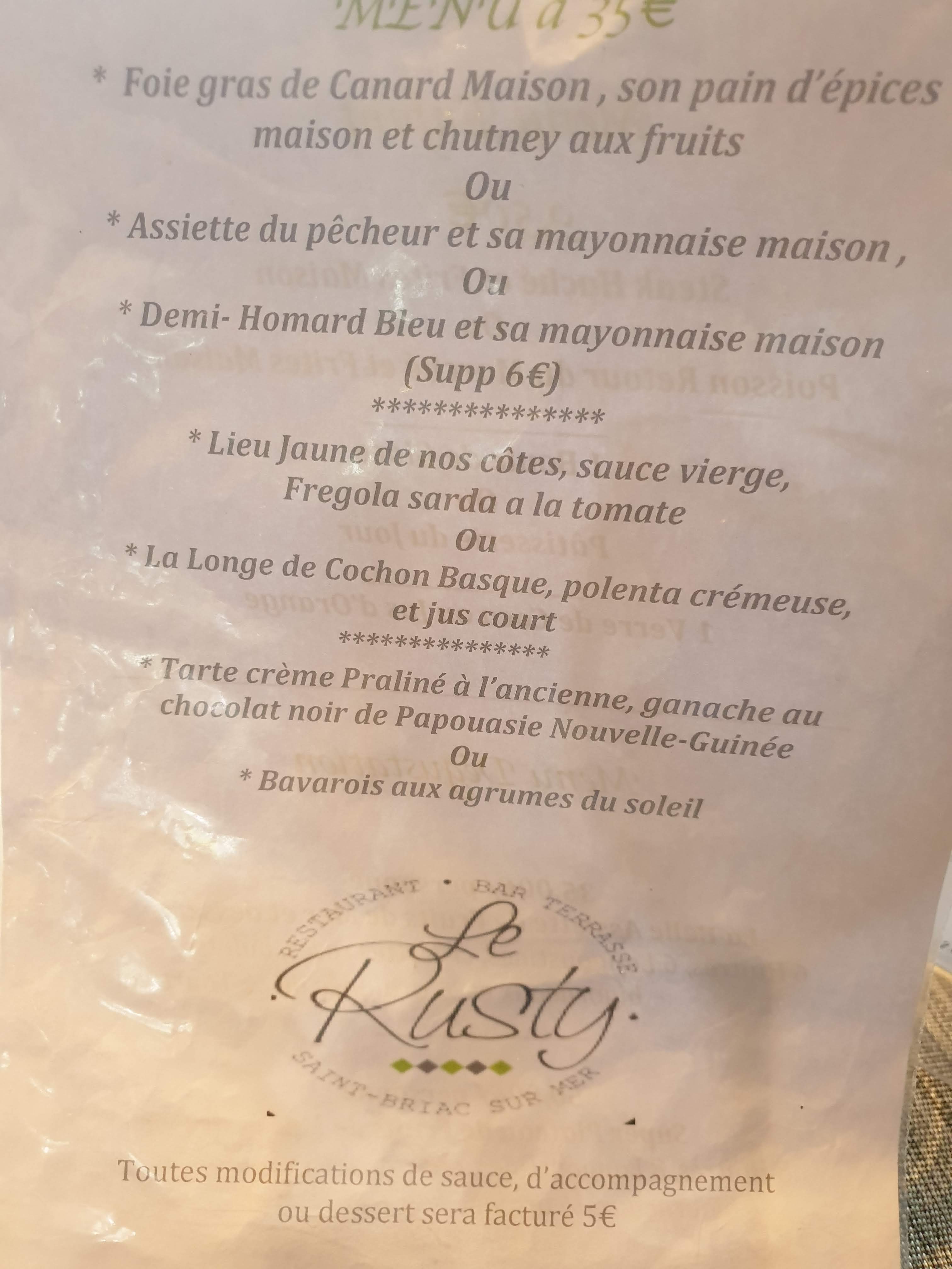 Le Rusty est une très belle surprise. Accueil parfait, cadre très sympathique et cuisine raffinée. Je recommande vivement.