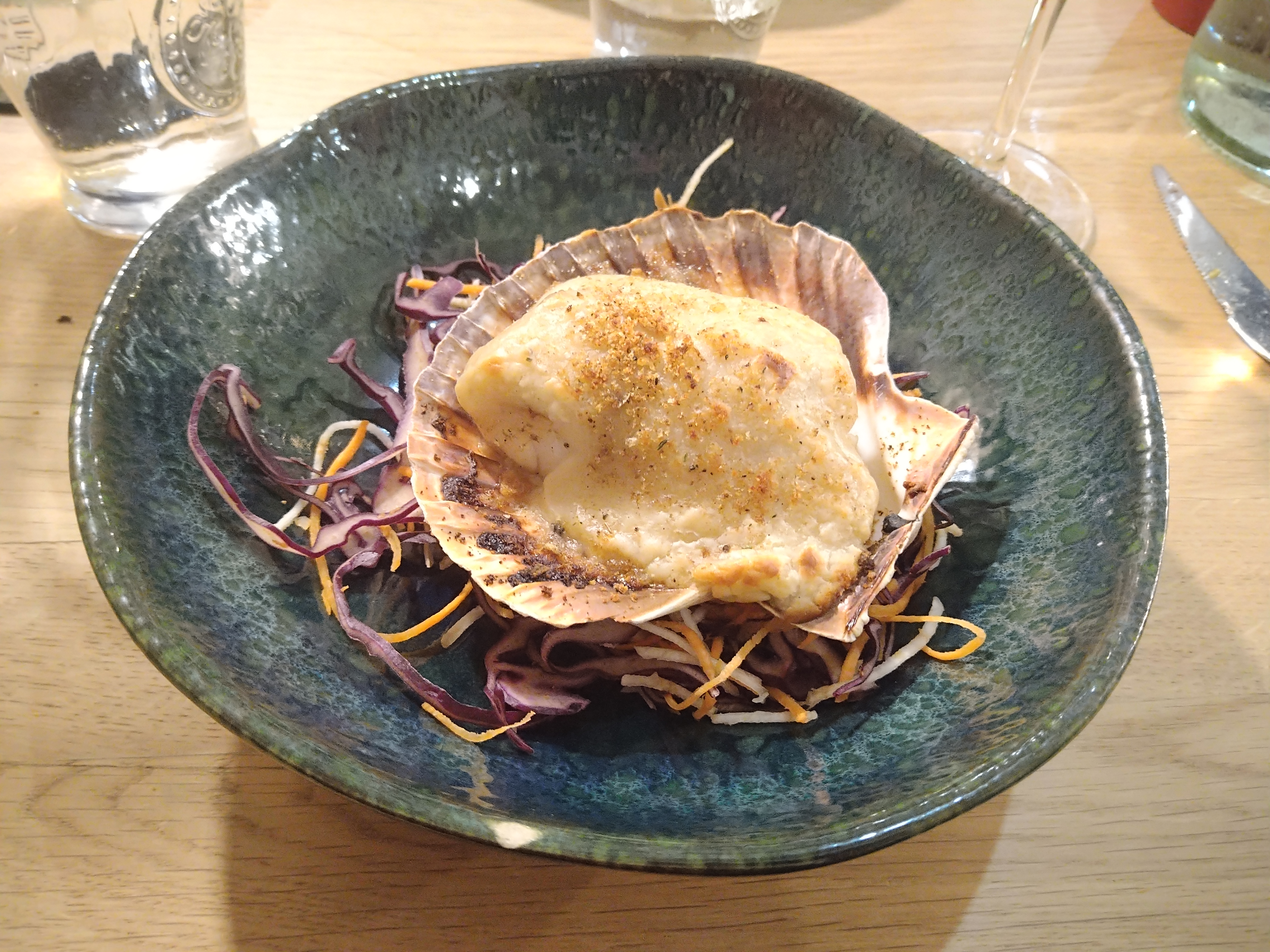 Posté le 01/11/2018 à 13:01"Très déçue de l’ambiance bruyante, impossible de tenir une conversation ! La brochette de Saint-Jacques tiède servie avec ... des petits pois à peine décongelés .... un gratin dauphinois... Le tout baignant dans une sauce épaisse ! Dommage !"
