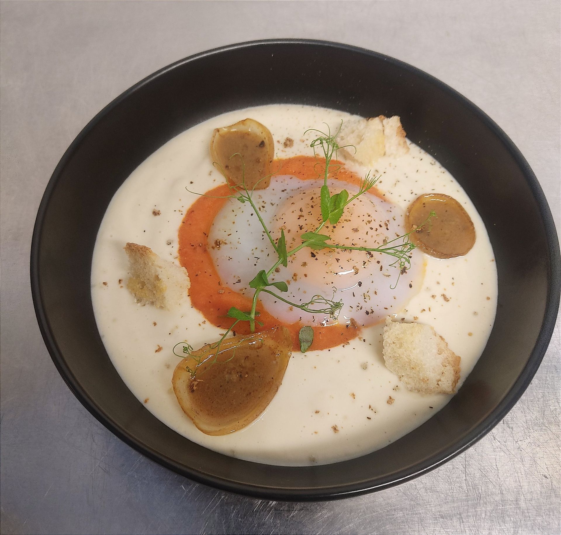 Bonjour, Nous faisons pas d' oeuf mollet chez nous c'est un oeuf parfait en confit nous avons du canard sinon c'est du sauté de porc ou du roti suivant les arrivages. Pour info au cas ou le chef est pas seul en cuisine en l occurence l oeuf etait fait par lui et confit aussi, le reste qui a été fait minute cela vous a convenu ???? Le mieux c"est de posé des questions aux serveurs car etre noté sur des plats que l on fait pas c"est pas evident.