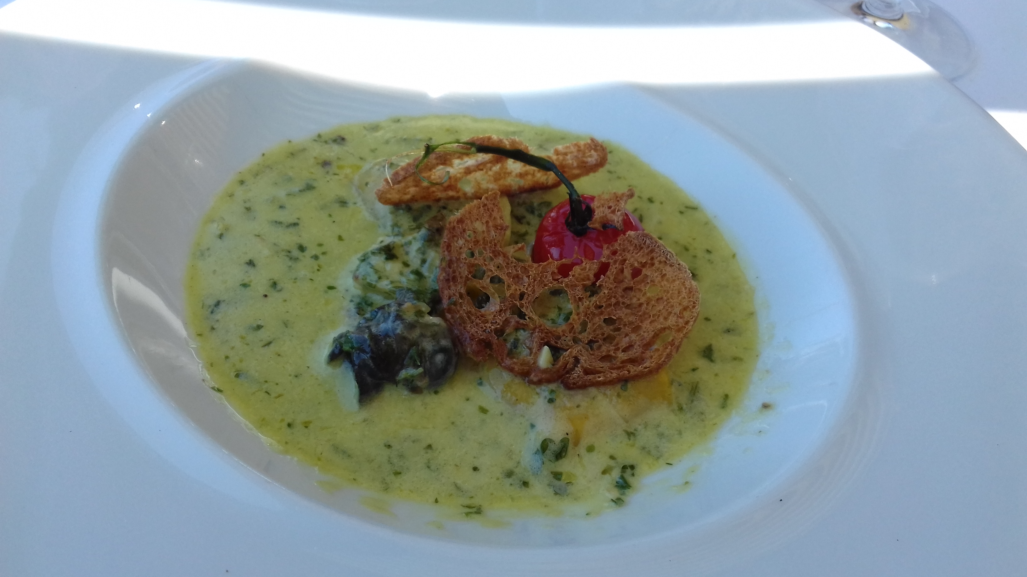 Posté le 22/06/2019 à 09:13"Menu à 35€, des noms à n’en plus finir contrairement à ce qui se trouve dans l’assiette. 4 crevettes dans une soupe froide à l’entrée (pas mauvaise heureusement) un poisson à l’aïoli sur 4 légumes qui se courent après. L’aïoli était fade. Je trouve le tarif excessif au vu de ce qu’on a dans l’assiette et le goût n’est pas forcément au rendez-vous. En fait nous payons la vue. Sinon l’accueil était plutôt agréable. Je n’y retournerai pas. Dommage."