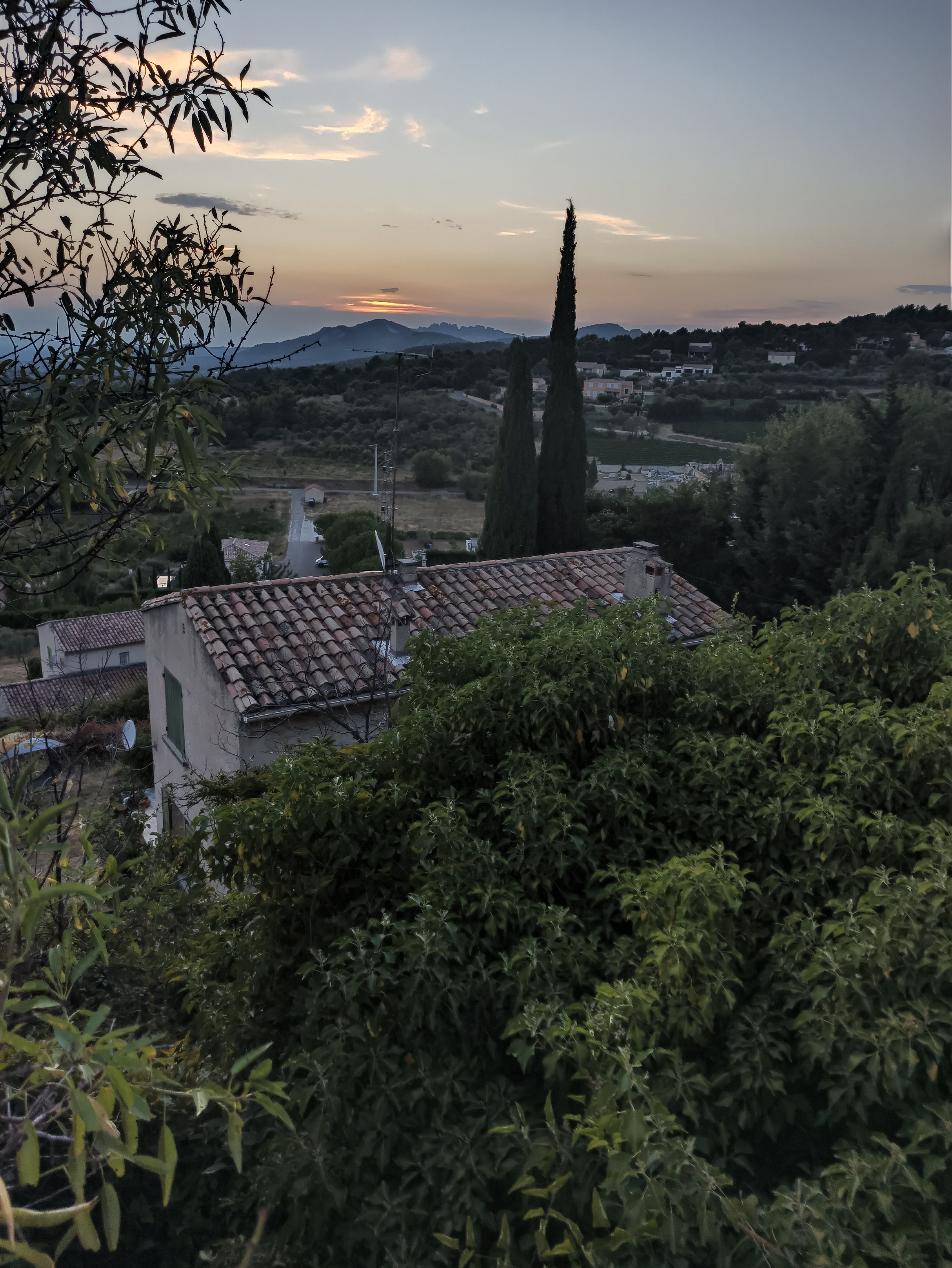 Situation du restaurant imprenable. Magnifique coucher de soleil sur les Dentelles de Montmirail. Plat de poisson avec sa sauce au fromage trop fade .... Super café gourmand et très bon vin blanc !