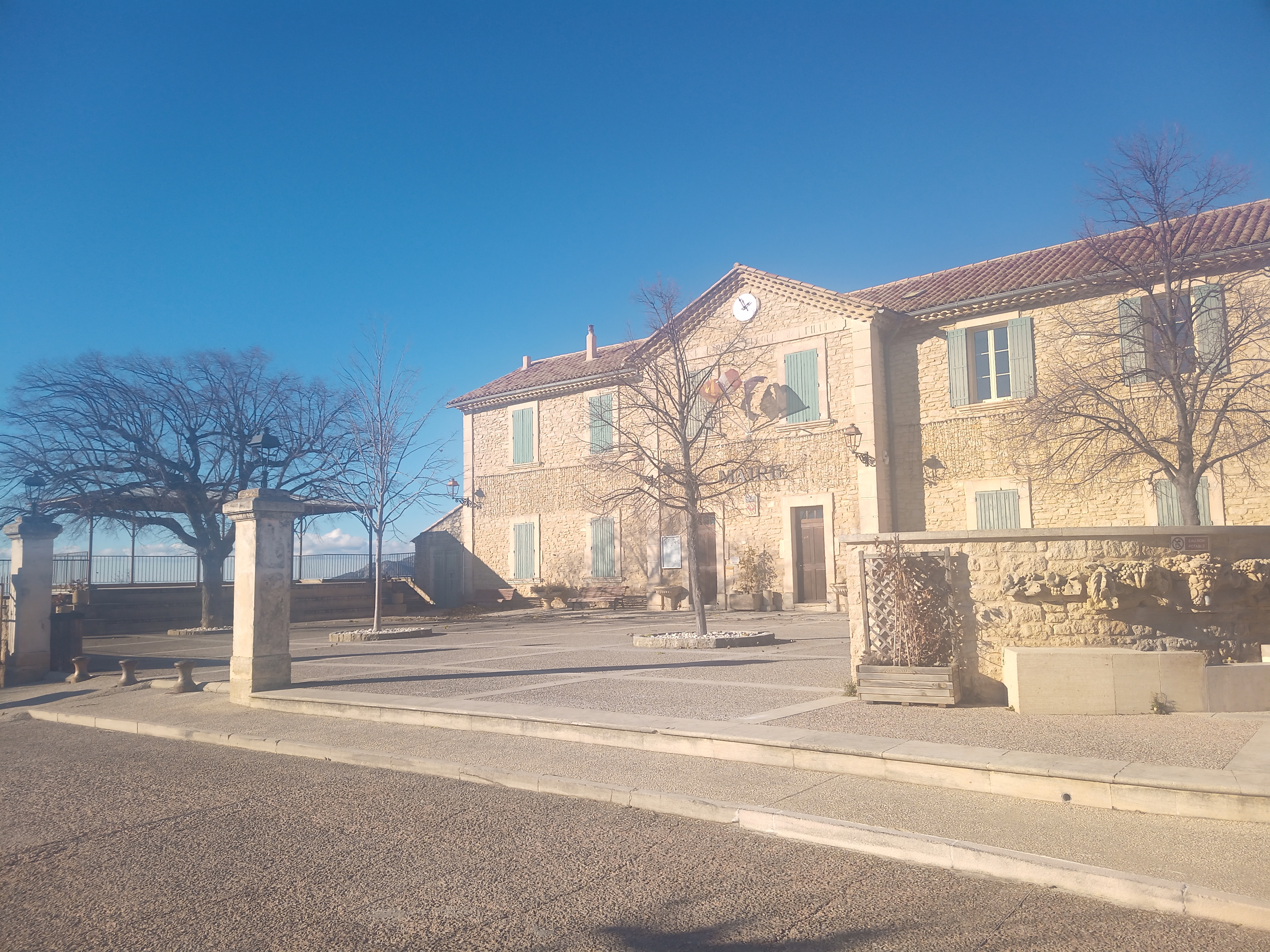Repas ce midi avec des amies, repas agréable, servi par Sylvain adorable, plein d humour et efficace avec une vue splendide sur les dentelles de Montmirail . Post de son professeur D Anglais ( lui seul peux comprendre)
