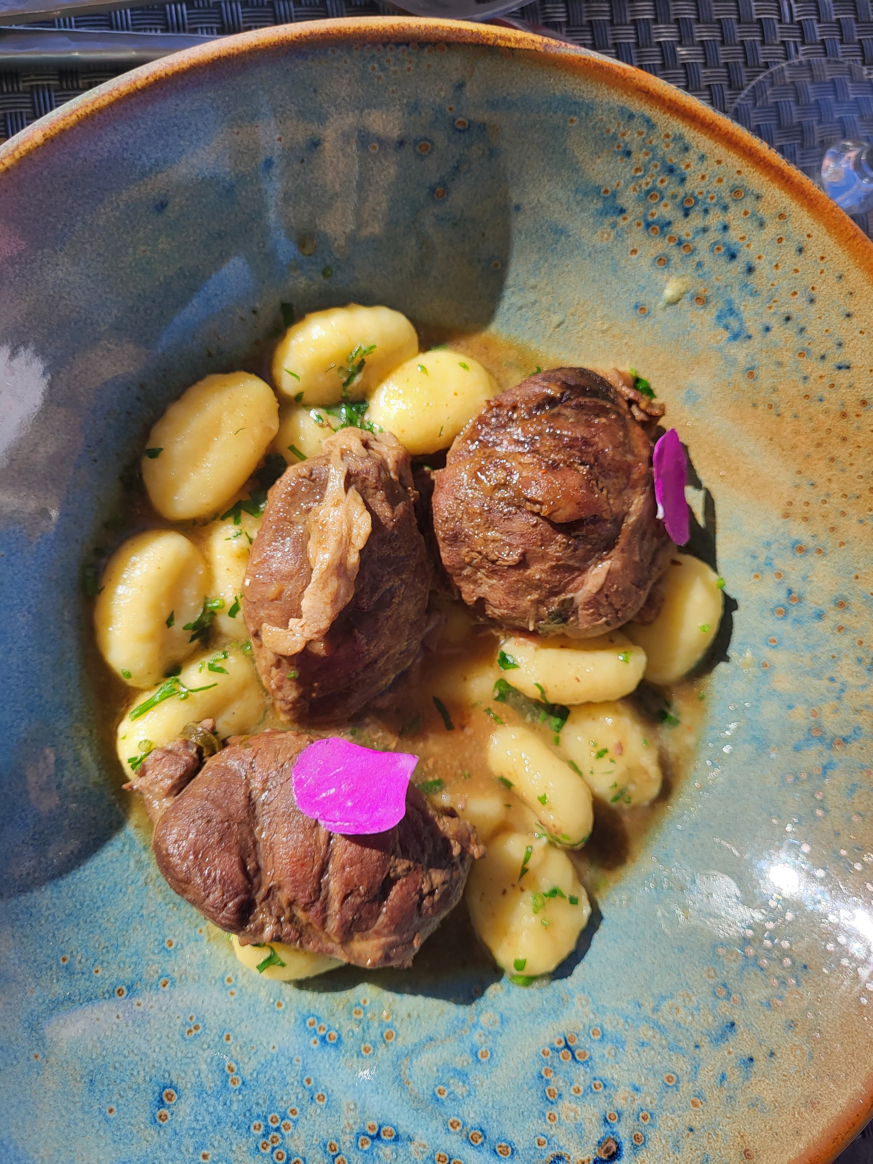 Le veau aux olives... un délice ; accompagné d'un tartare de poisson aux agrumes en entrée et d'un tiramisu Corse en dessert, pour terminer avec une myrte et une guimauve aux fruits de la passion maison. Le top pour un dimanche d'été indien, avec une magnifique vue et un personnel attentionné ! Restau vivement conseillé 😊