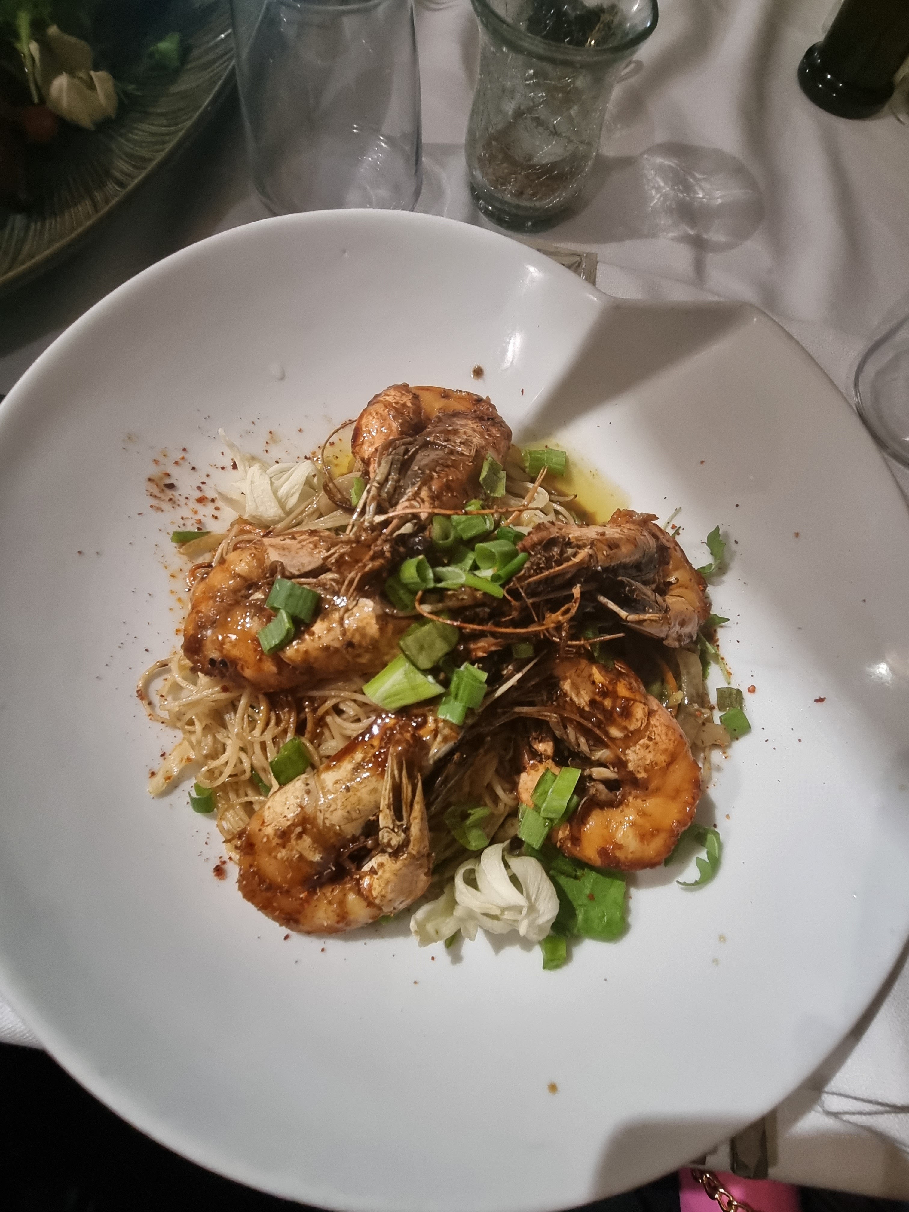 Parfait pour un dîner en amoureux avec une vue magnifique aux abords de la plage La service au top *les gambas avec nouilles asiatiques étaient très bonne J'ai un problème avec la pluma ibérique ,je suis dans le métier et la viande qui m'a été servie n'était pas de la pluma ibérique , c'était censé être une viande cuite à la plancha qui souvent est servi rosé vu la qualité de la viande même pour du porc....mais il n'en a rien été,,j'ai eu une viande type joue de porc confite,il n'ya qu'à regarder l'assiette on voit tous de suite que ce n'en était pas ,je pense que le cuisinier à passer le morceau de viande qu'il avait à l'ancienne carte... Du porc Ibérique confit comme par hasard,je n'ai rien dit le soir même,par ailleurs,le plat était très bon mais svp faites attention pour les clients.. j'ai enlevé une étoile à la cuisine pour cela sinon c'était un sans faute, j'ai adoré le dessert nociola très bon ,un poil sucré mais c'est mon goût personnel.