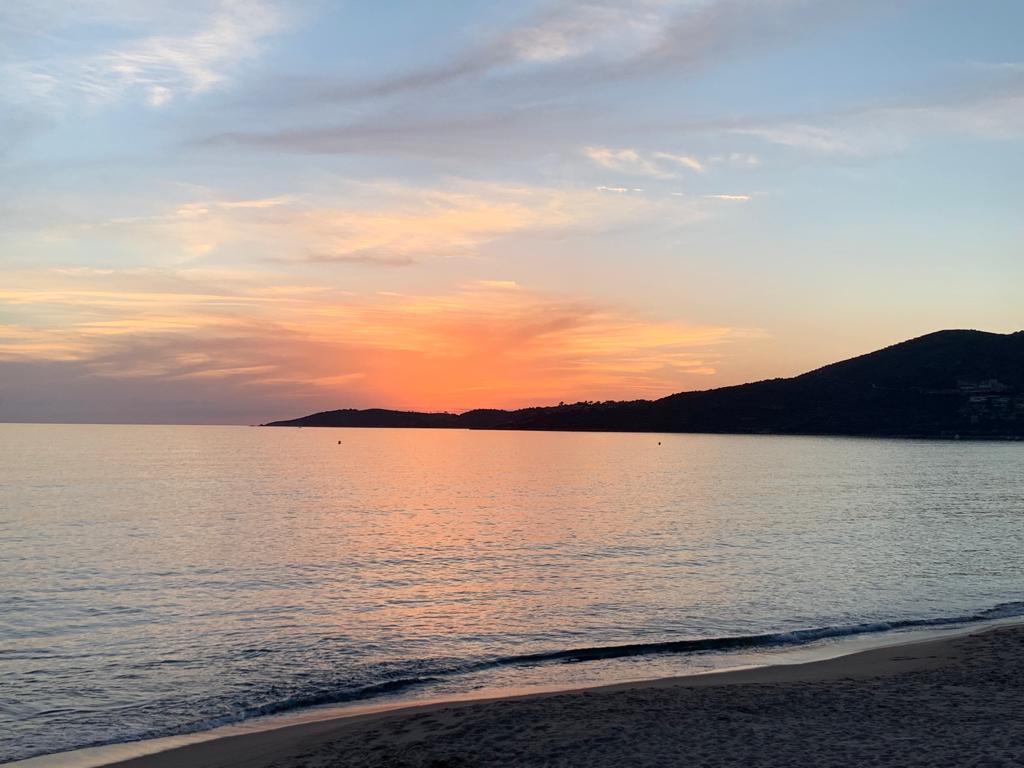 Très bon dîner avec une vue magnifique sur le coucher de soleil. Le poisson était excellent, serveurs et serveuses très sympa. Dommage que le bon fromage corse sente si fort ! 😋🤣