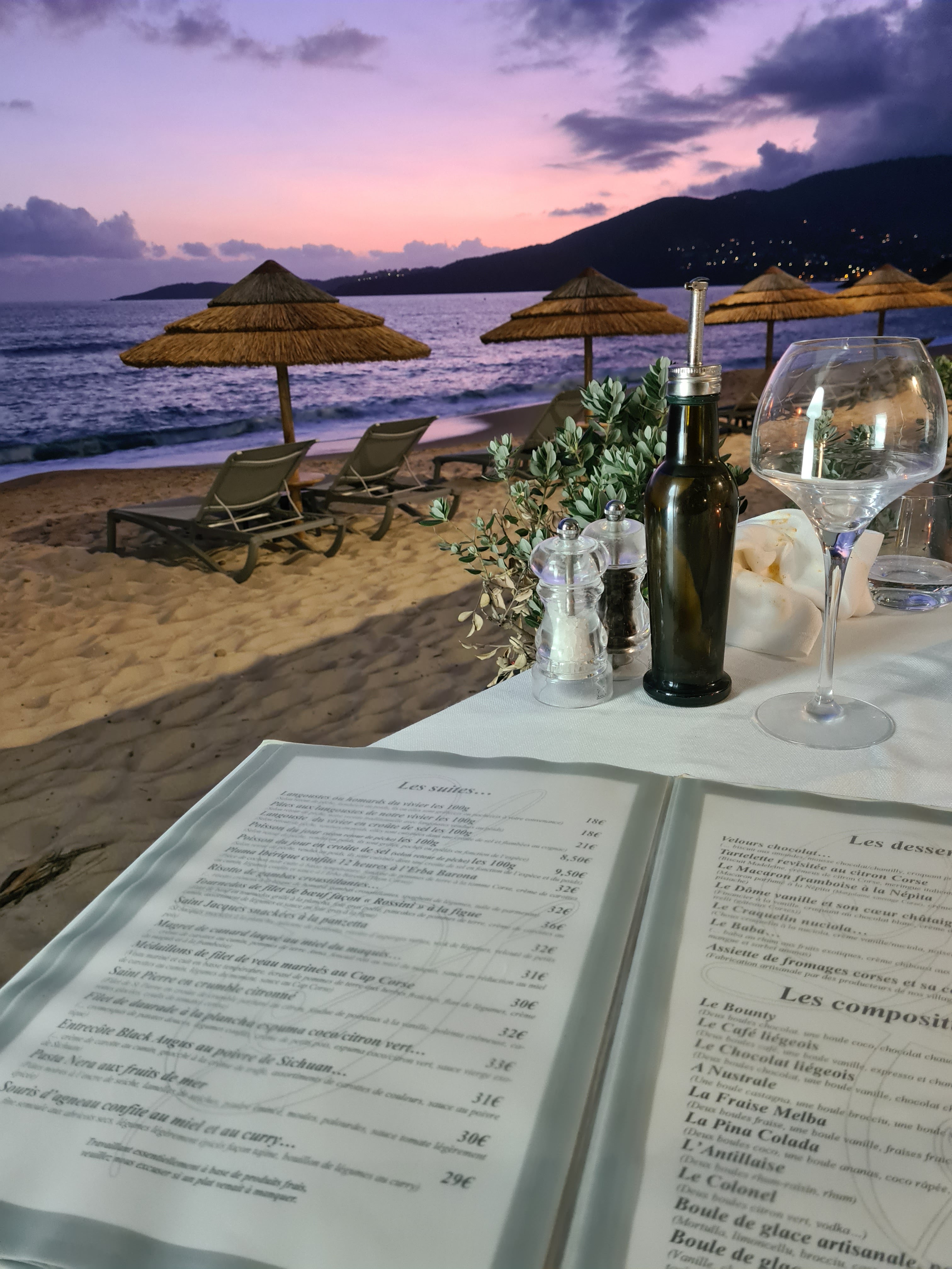 Nous avons reservé avec ma femme et notre enfant de 3 ans pour diner au couché de soleil. Le personnel est trés gentil, le cadre est magnifique et les plats sont delicieux, nous avons pris les menus à 37€ , les plats sont trés qualitatifs et copieux , ils valent largement leur prix Merci pour cet agréable moment!