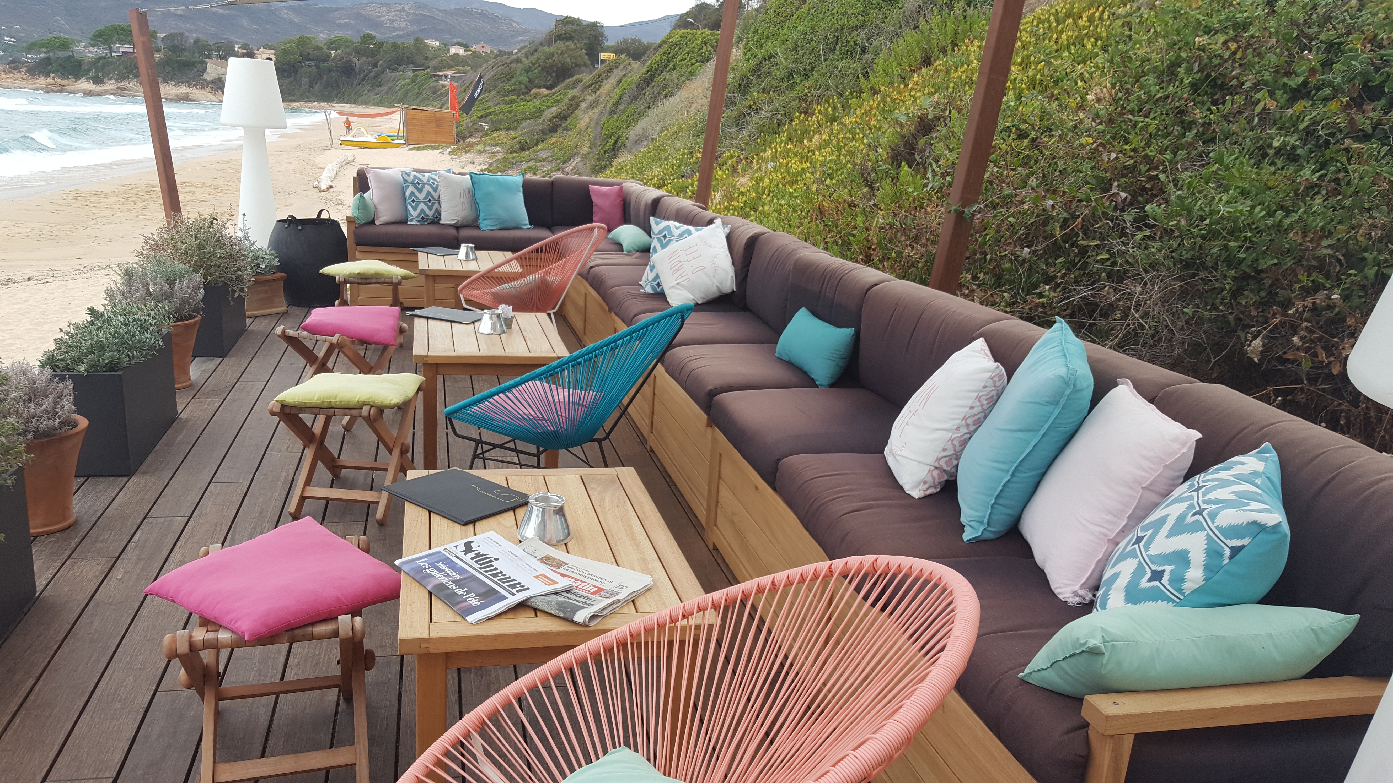 Restaurant idéalement placé. Possibilité de louer des transats pour un prix raisonnable. L accueil est au top. Un grand choix sur la carte et des serveurs et serveuses très à l écoute. Le tout avec un vue sur la plage qui fait rêver. Une mention spéciale au cuistot pour la décoration des plats. Si vous passez à sagone c est à cet endroit qu'il faut s arrêter.