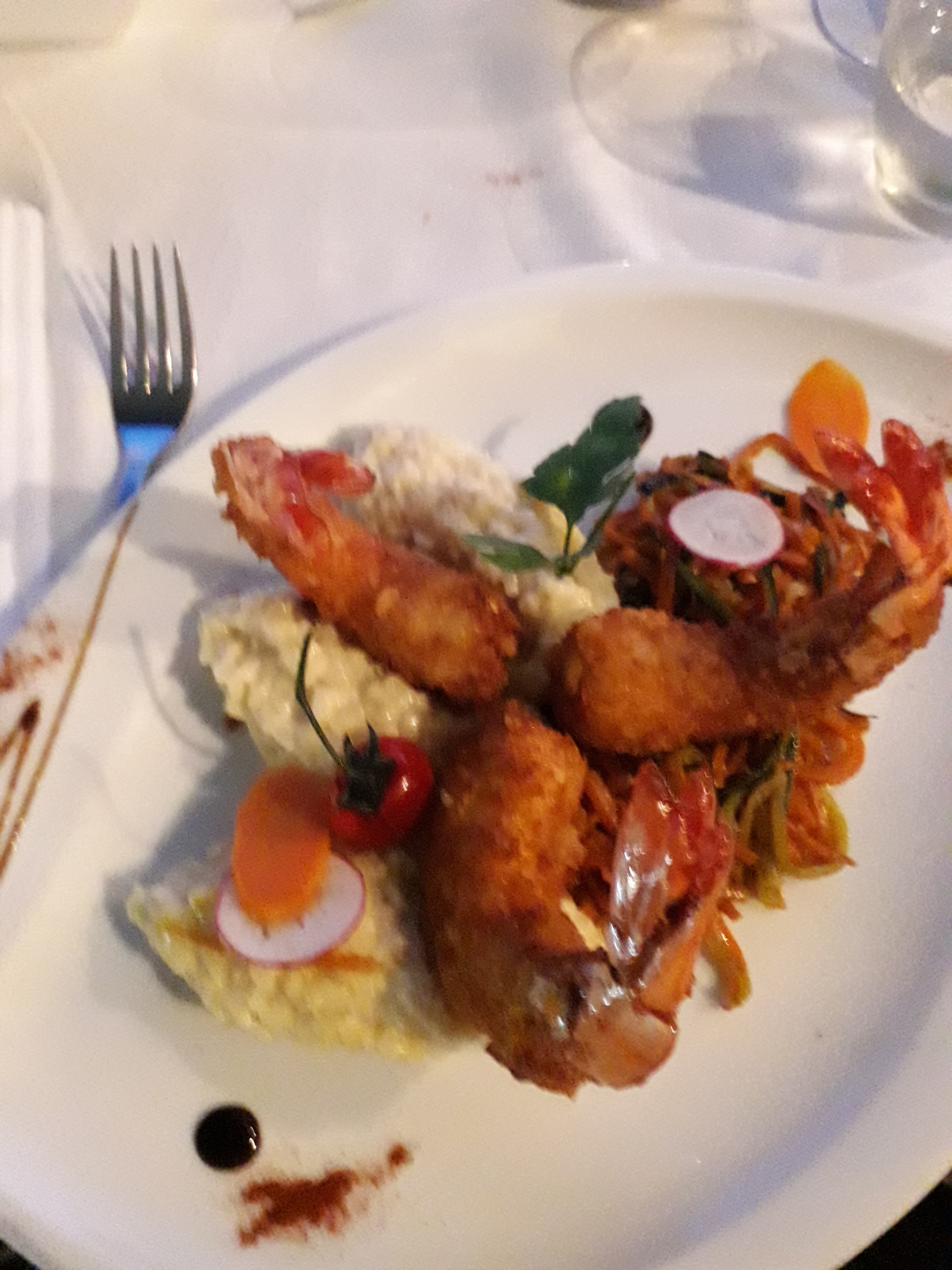 Superbe soirée: service au top et plats très bons : coquilles St Jacques cuites à cœur comme on aime et risotto de gambas savoureux. Les desserts sont raffinés : financier pistache-framboises une tuerie et le vacherin aux fruits frais excellent. Je recommande