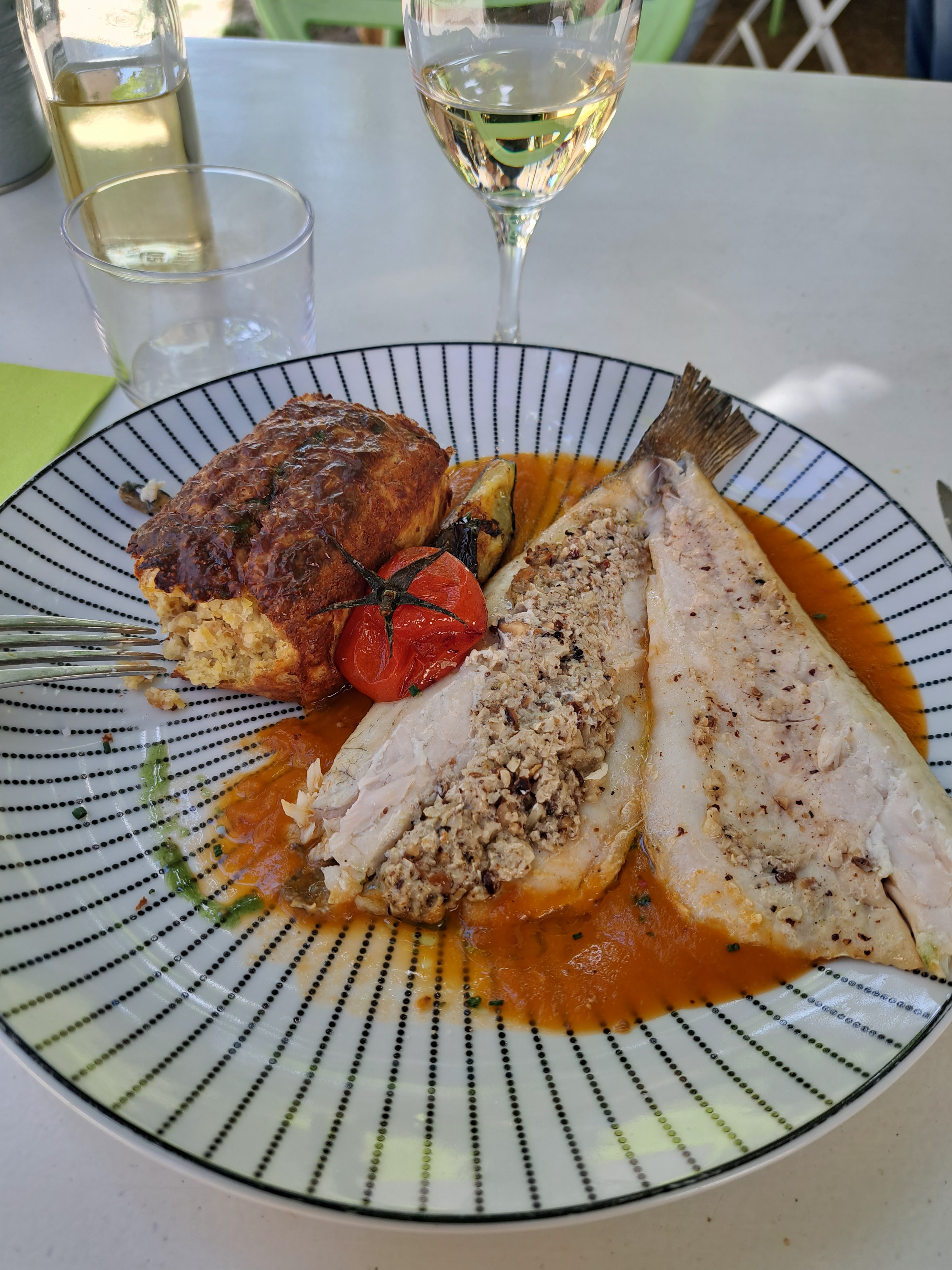 Absolument délicieux et service très sympathique ! Un très bon moment à l ombre des arbres. 58 euros 2 personnes vin compris. Nous nous sommes régalés !