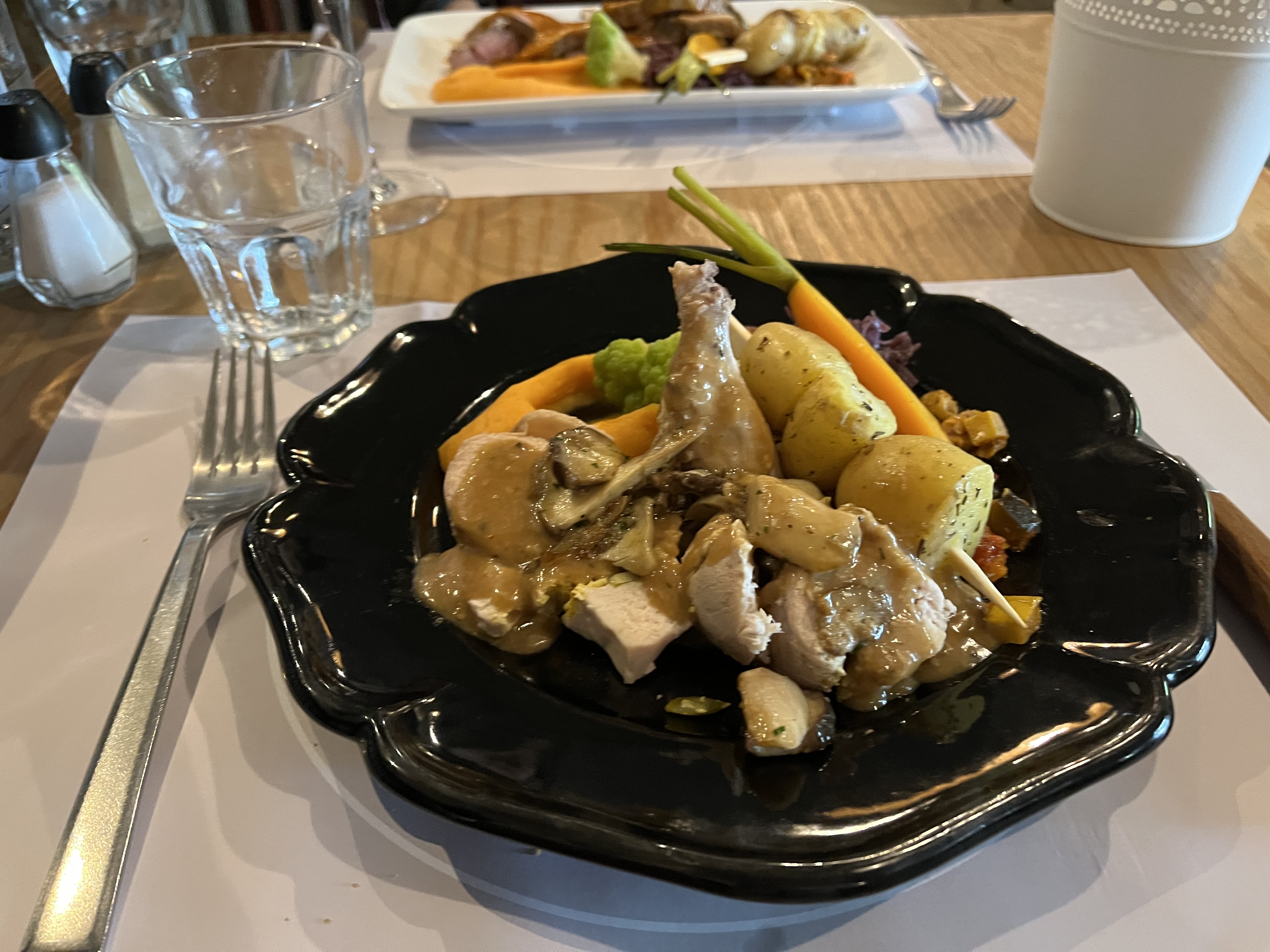 Excellente cuisine, nous nous sommes régalés ! Ma compagne a pu avoir un plat végétarien non prévu, merci beaucoup pour elle. Le cadre est sympa et les WC sont originaux.