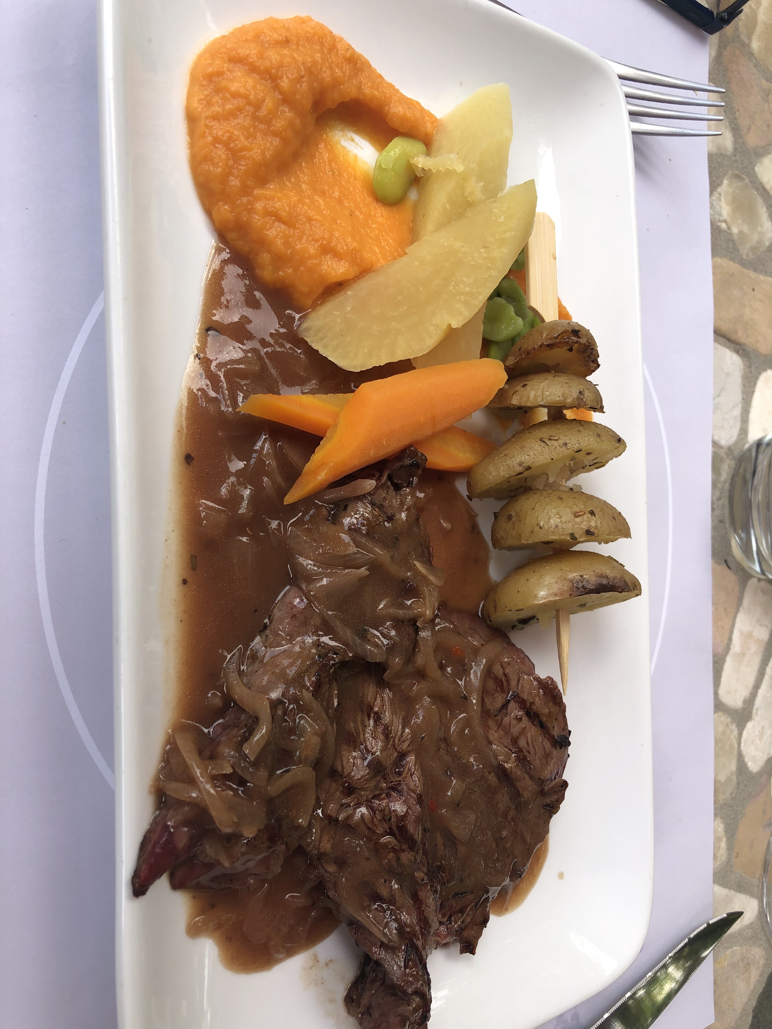 Bon restaurant et décor décalé très sympa Rognon en entrée cuit saignant, épaule d'agneau confite maison !