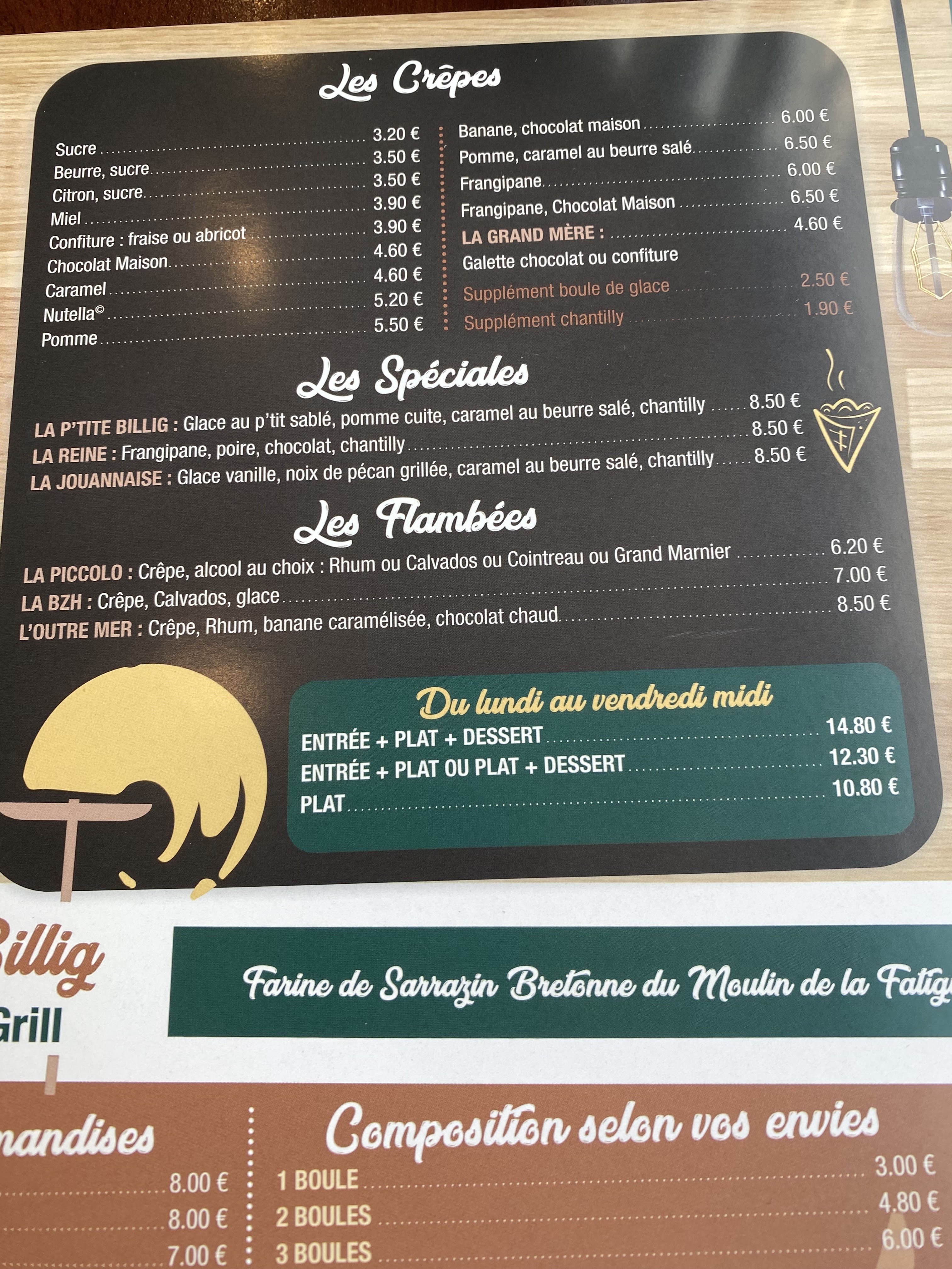 Très bon restaurant, galette le Billig un délice, la sauce salade miam, les frites 🍴 et le dessert trop bon. Super découverte de se restaurant trouvé par hasard ! Nous reviendrons c'est sur !