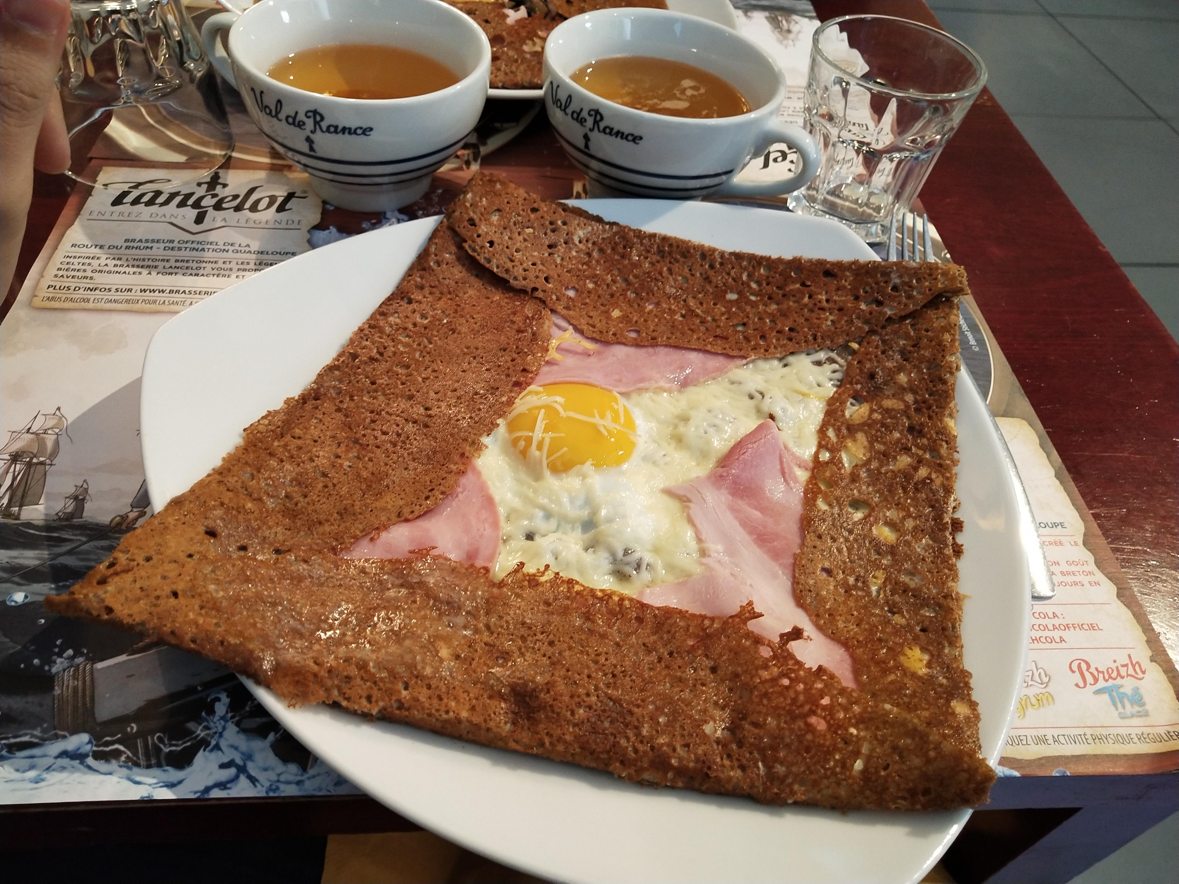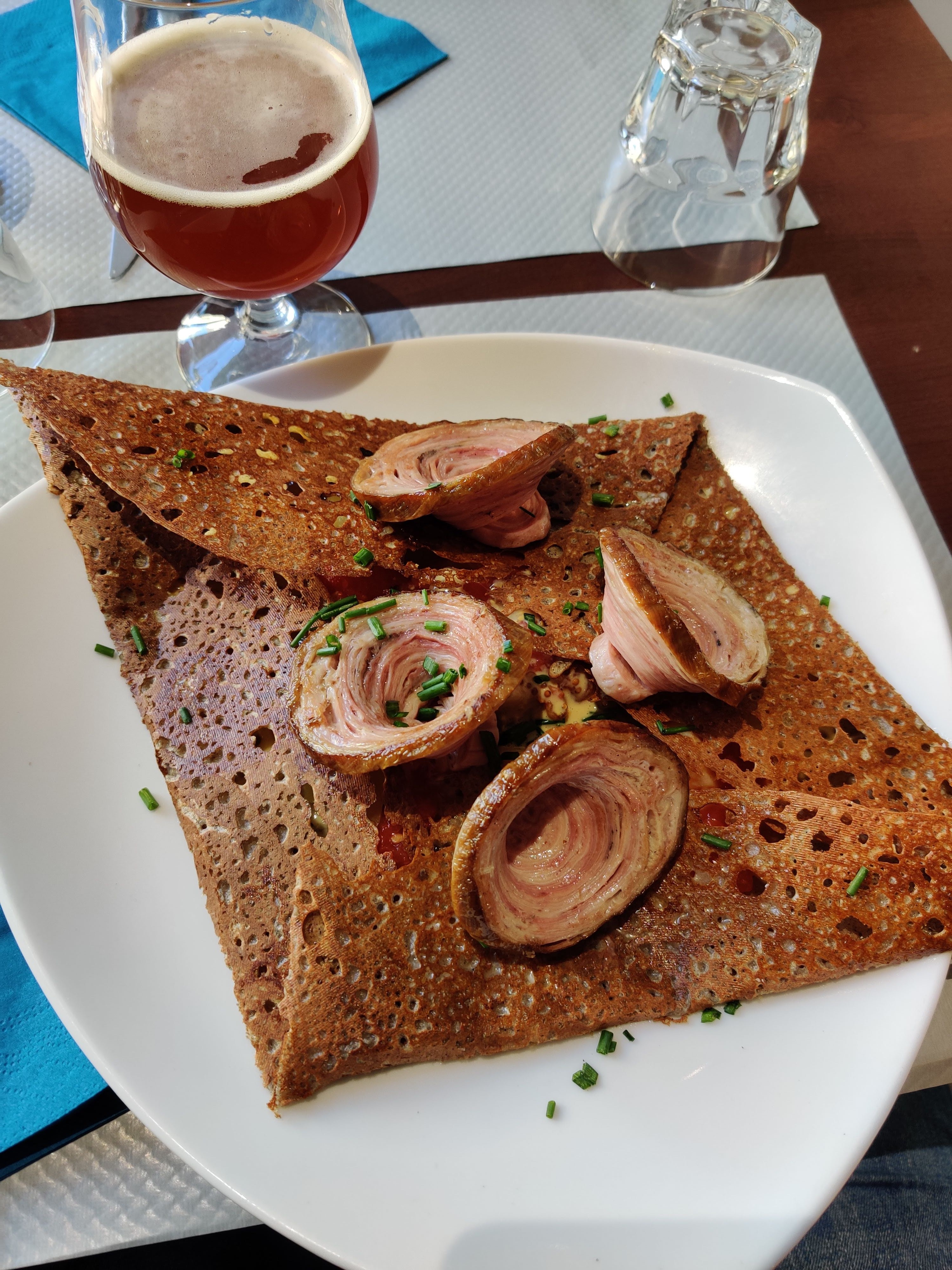 Une excellente galette Bretonne très copieuse avec un bollé de cidre au top.