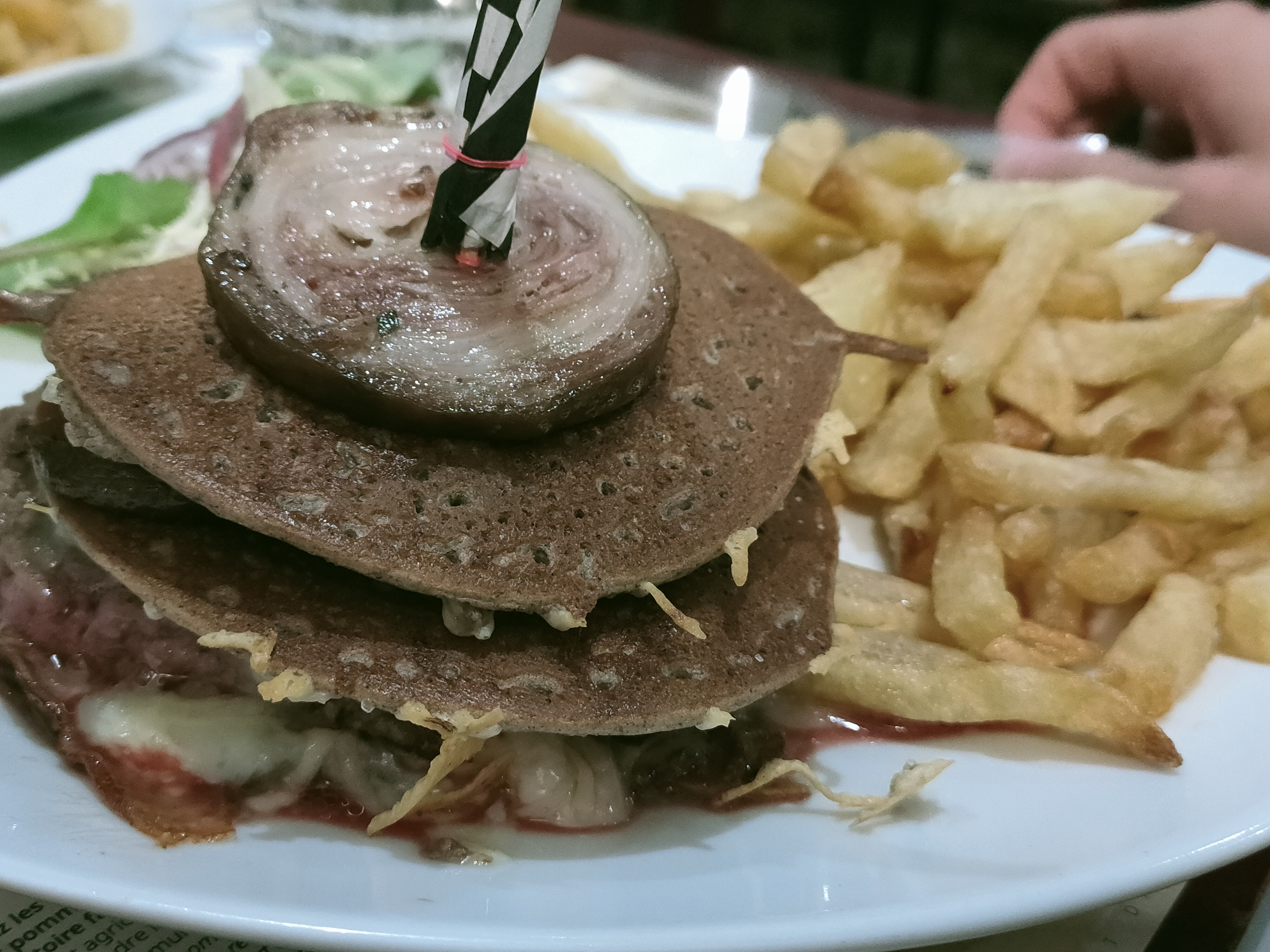 La galette burger 😋 très bon mais la crêpe beurre sucre une tuerie je recommande 👍👍
