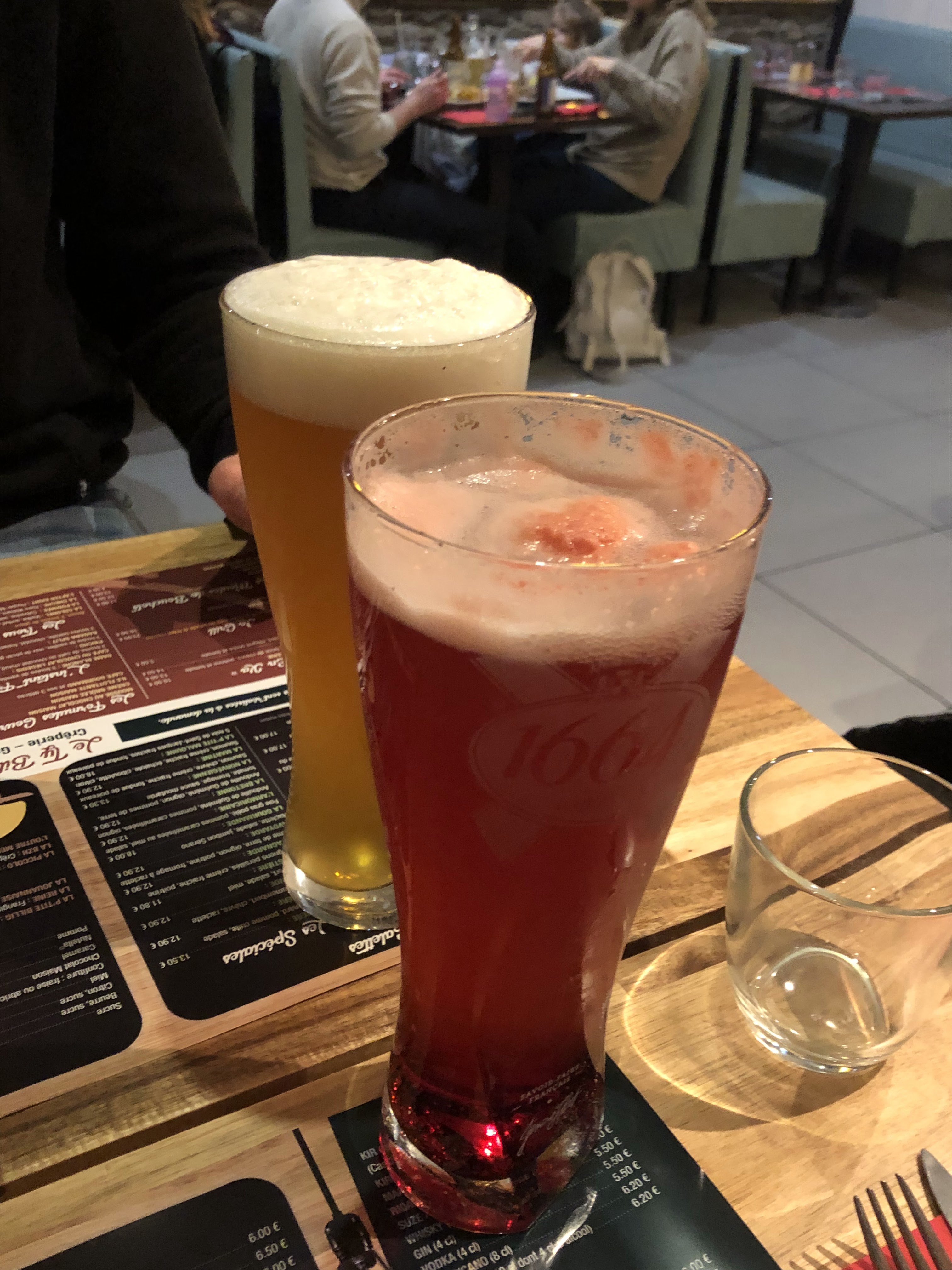 Le personnel est avenant et serviable. Le repas était savoureux et copieux : un burger avec des galettes bretonnes en guise de pain, dans une assiette garnie de frites maison et de crudités (j’ai eu du mal à tout manger, tellement copieux…), accompagné d’un cidre fruité. C’était une très belle expérience.