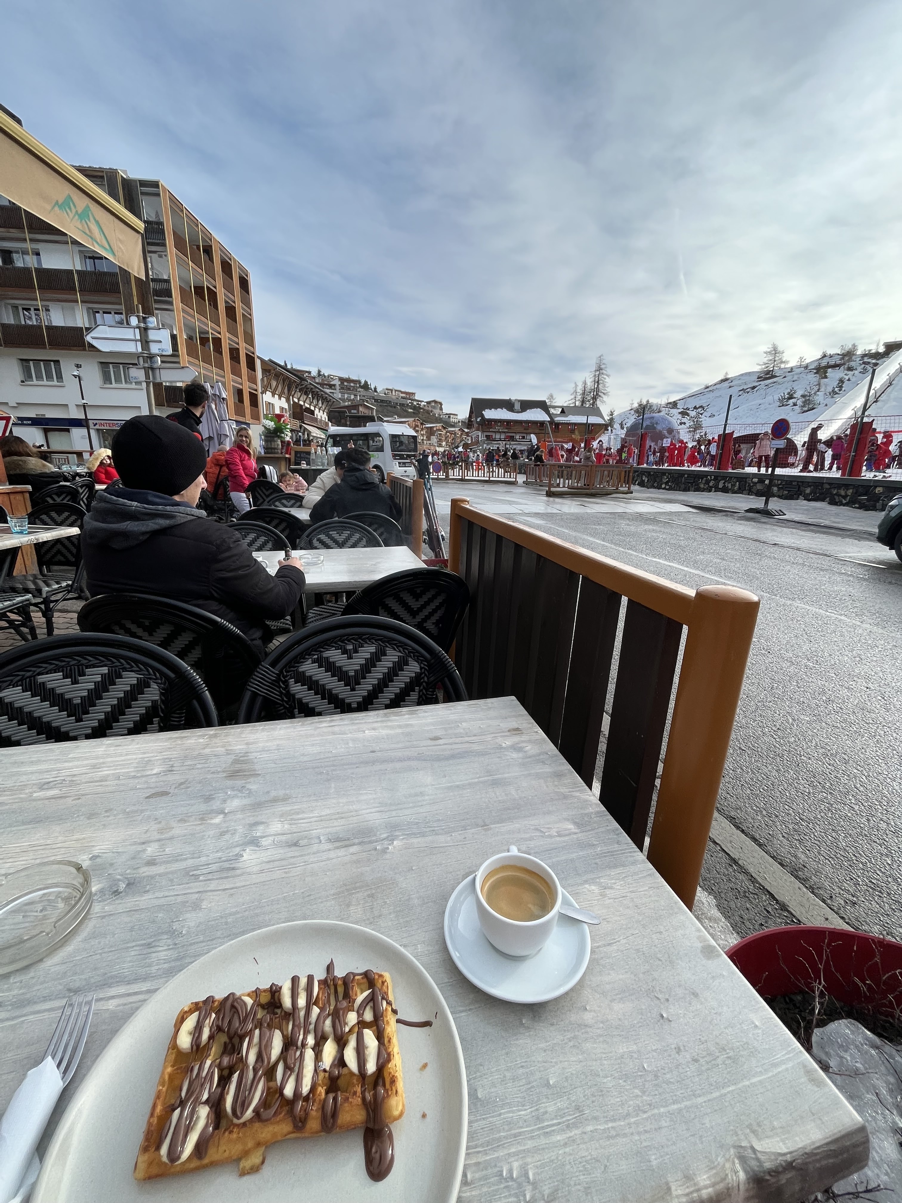 Agréable moment en terrasse en bas des pistes