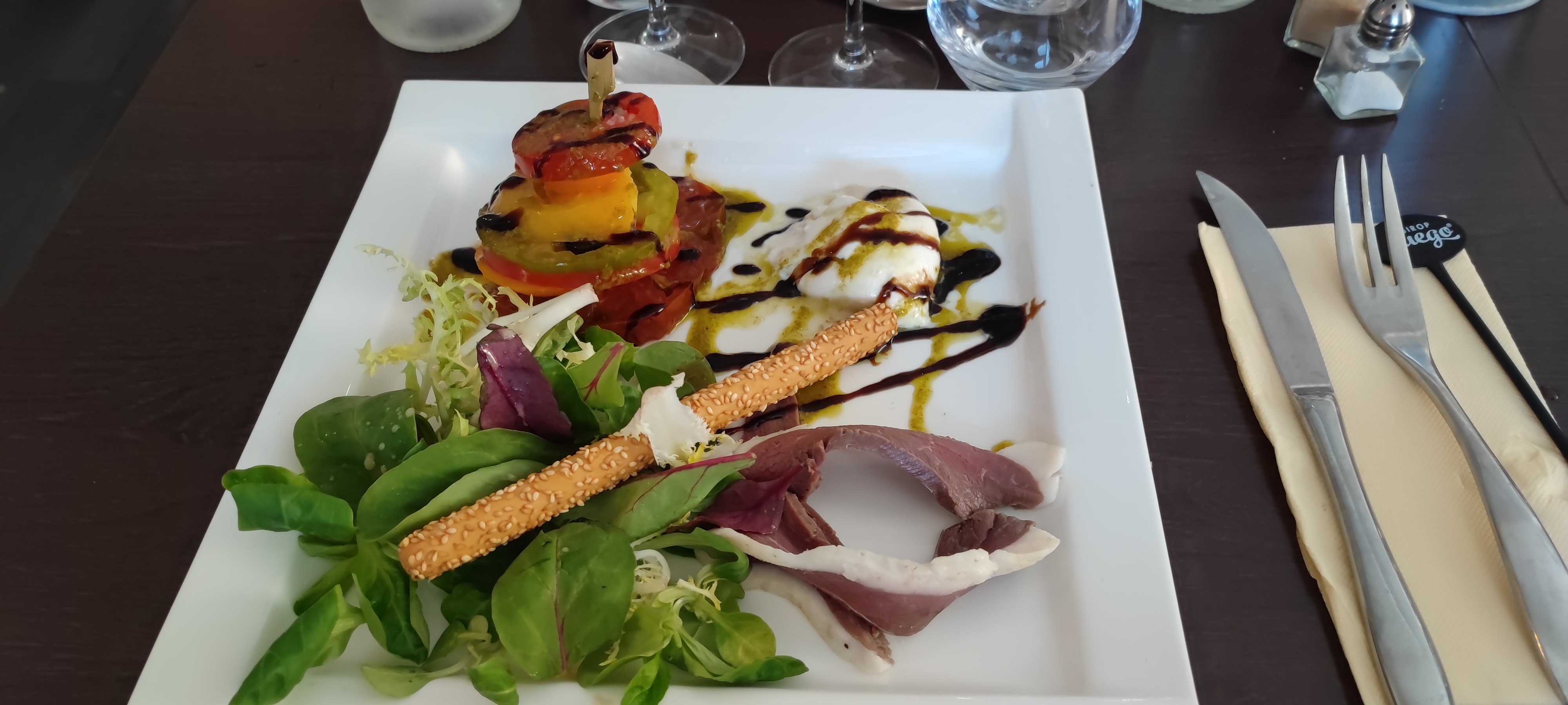 Première escale ce jour sur la terrasse de ce restaurant.. Juste parfait! Accueil courtois, service attentionné, plats copieux et joliment présentés. Deux cyclistes arrivant vers 14 heures, donc à la fin du service, ont quand même eu droit à une belle salade composée. J'ai trouvé un nouveau lieu de pause déjeuner hebdomadaire..
